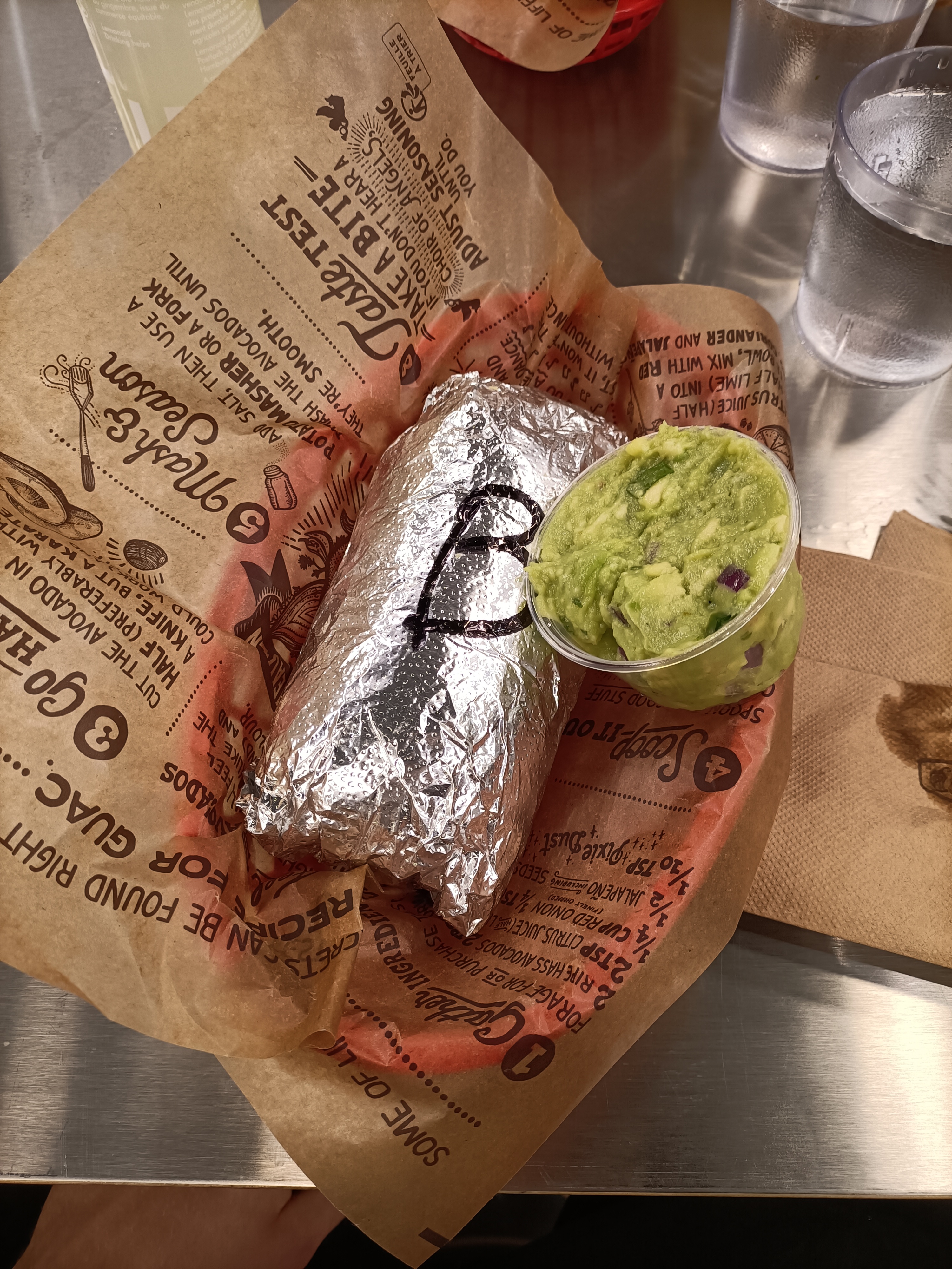 Arrivés à 21h35 le serveur nous prévient qu'ils ferment bientôt- oui 23h selon Google !!! Il répond non 22h30 - c'est à dire qu'il nous fait suer parce qu'on n'aura pas assez de temps de manger 2 burritos en 1 heure !!!! Bravo chipotle. On est parti dans un restau de quartier (ce qui est parfait !!)