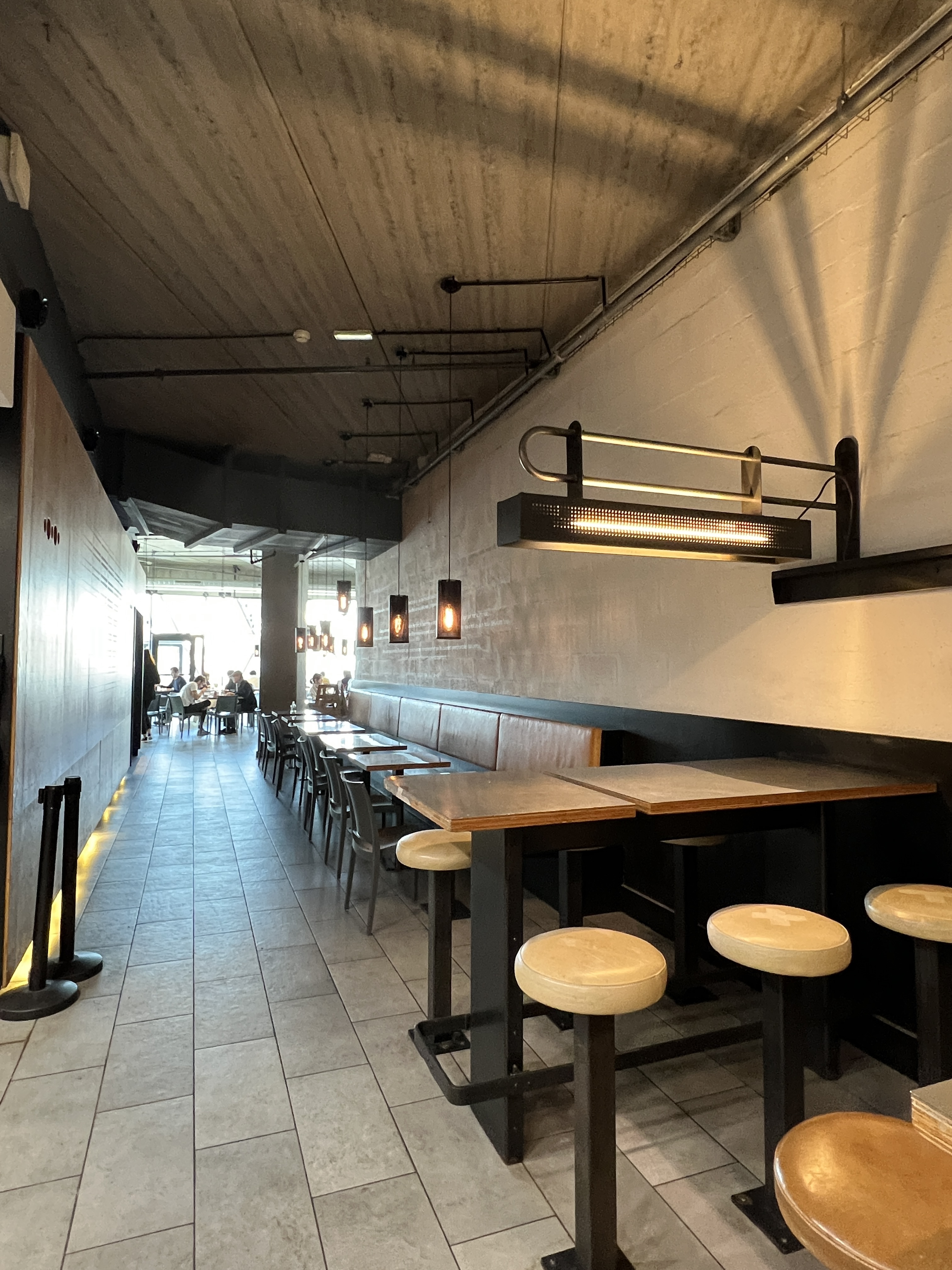 Beau restaurant, service rapide ( peut être trop car complètement déshumanisé le jour où nous sommes allés en tous cas ). Impossible de juger de la qualité des aliments, ce sont juste des poches plastiques avec la Bouffe déjà précuites donc bon … Le point négatif est surtout le bruit , q’est ce que c est bruyant pouah … franchement on a vite mangé sur place et on a pas traîné!