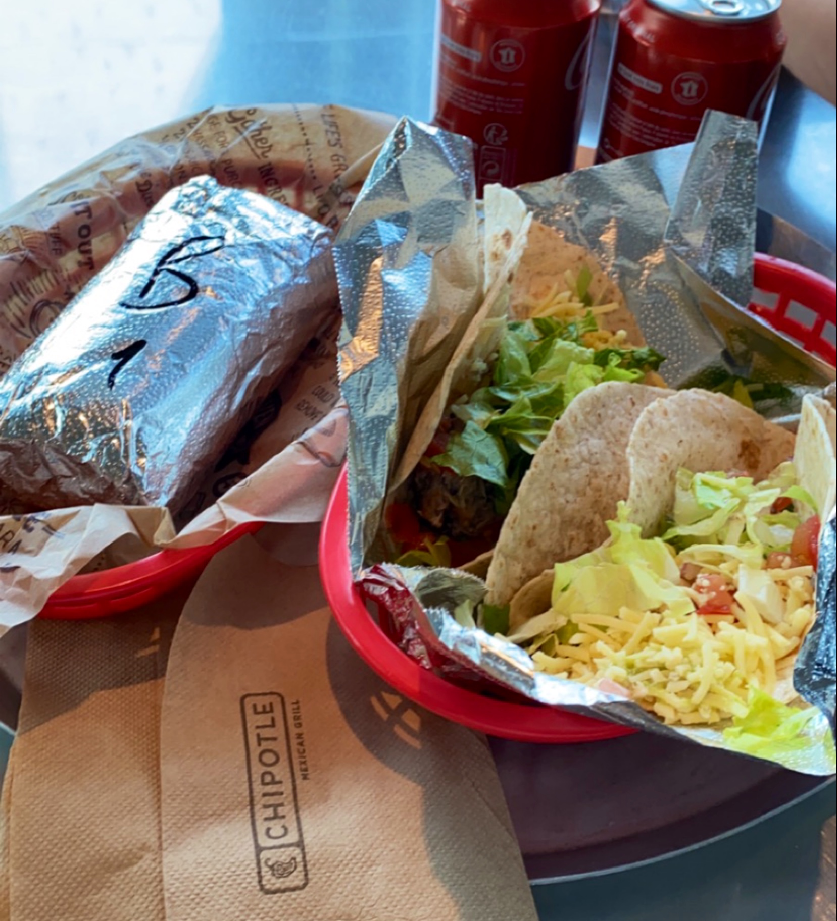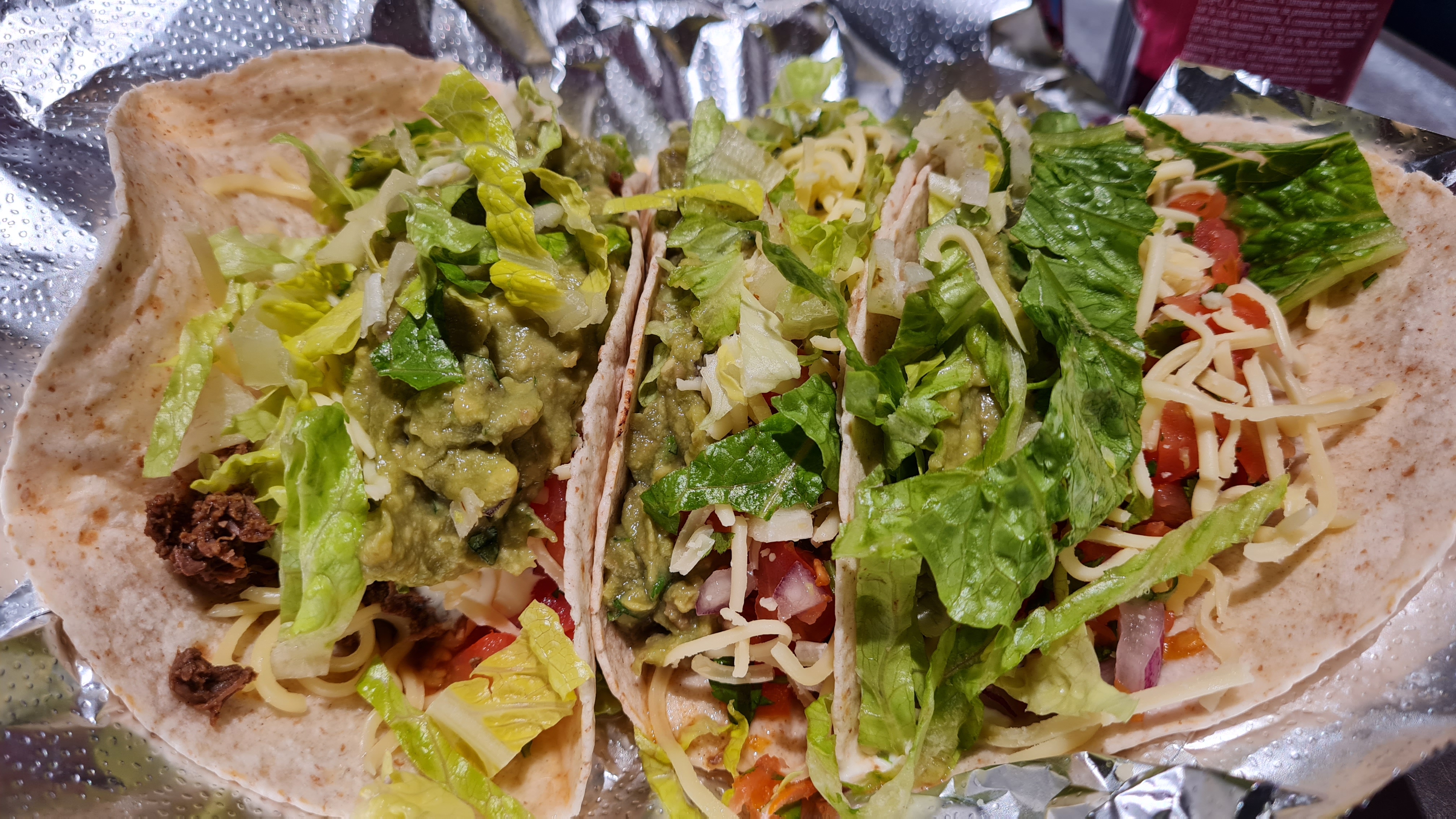 Il ne faut pas chipoter Chipotle ne m'a pas emballé ! Pas senti la différence des 3 viandes, tacos au blé et pas au maïs comme il existe au Mexique ! On m'a conseillé Take Otac qui font de vrais tacos !!!!