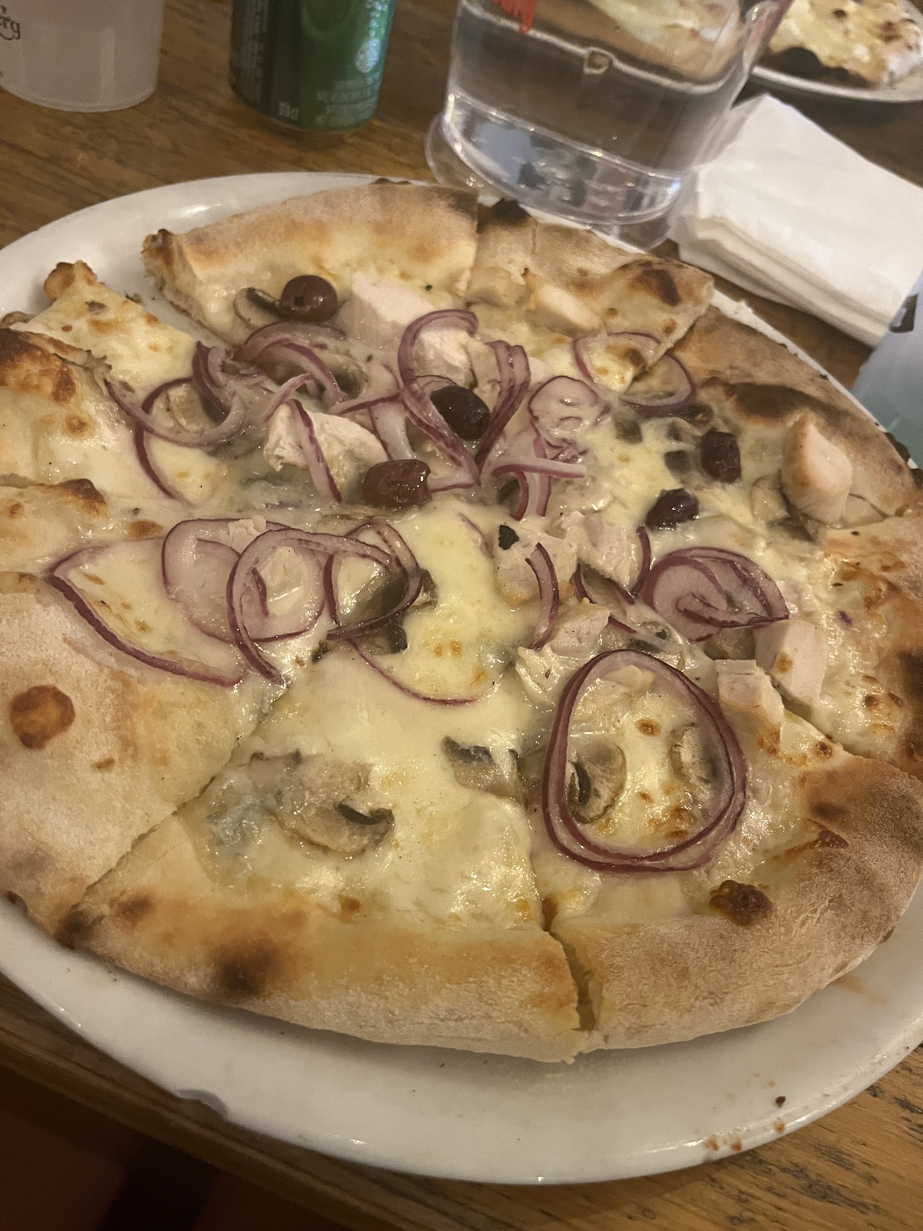 Heureusement que le cadre est sympa, il a sauvé le repas. Nous étions un groupe de 10 personnes à avoir commandés des pizzas et au bout de presque 1h d'attente, on s'est rendu compte le pizzaïolo était en train de nettoyer sa cuisine pour fermer. Le patron n'a pas vu que sa commande n'était pas passée et au lieu de nous offrir un dédommagement, il nous a menti en disant qu'il y avait eu une coupure d'électricité. Bref 1h30 pour une pizza aux produits non frais.