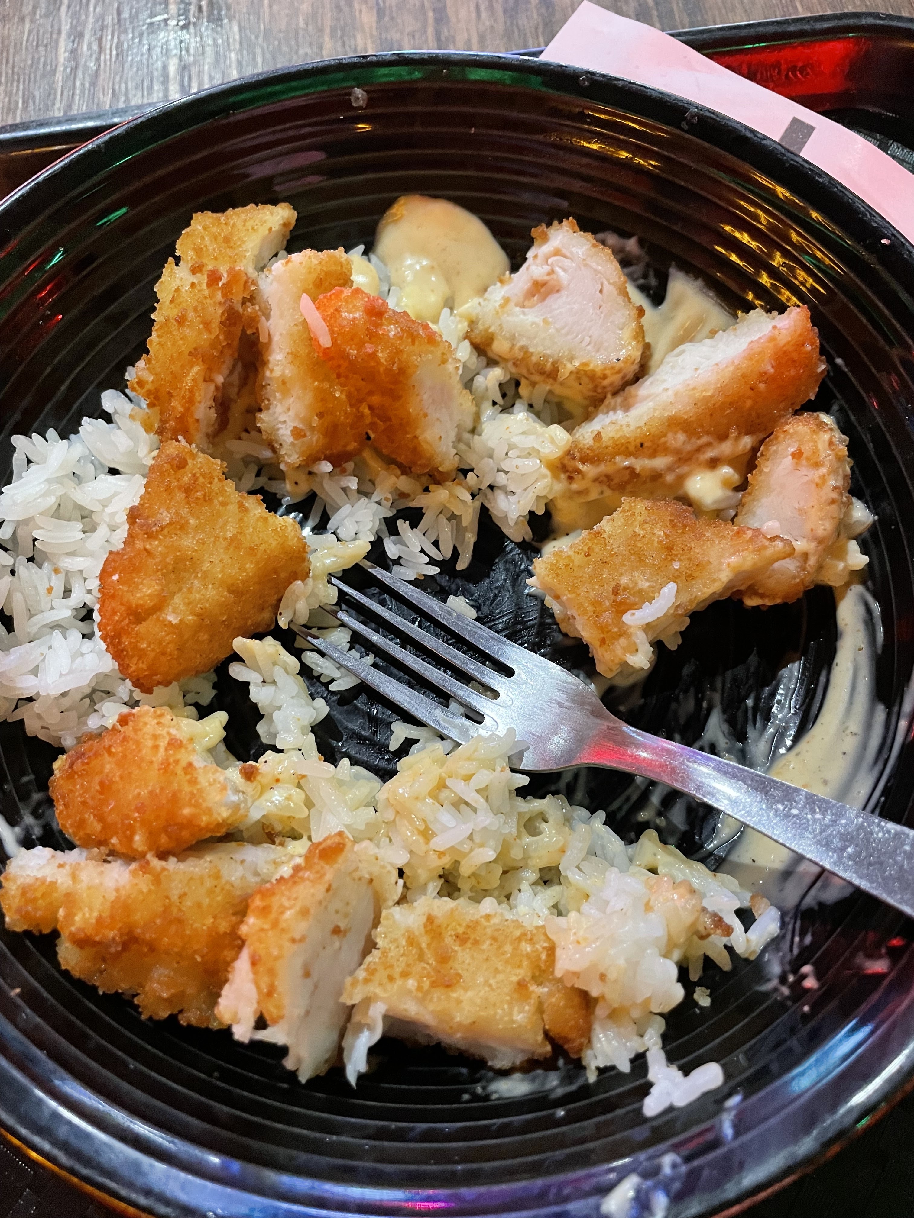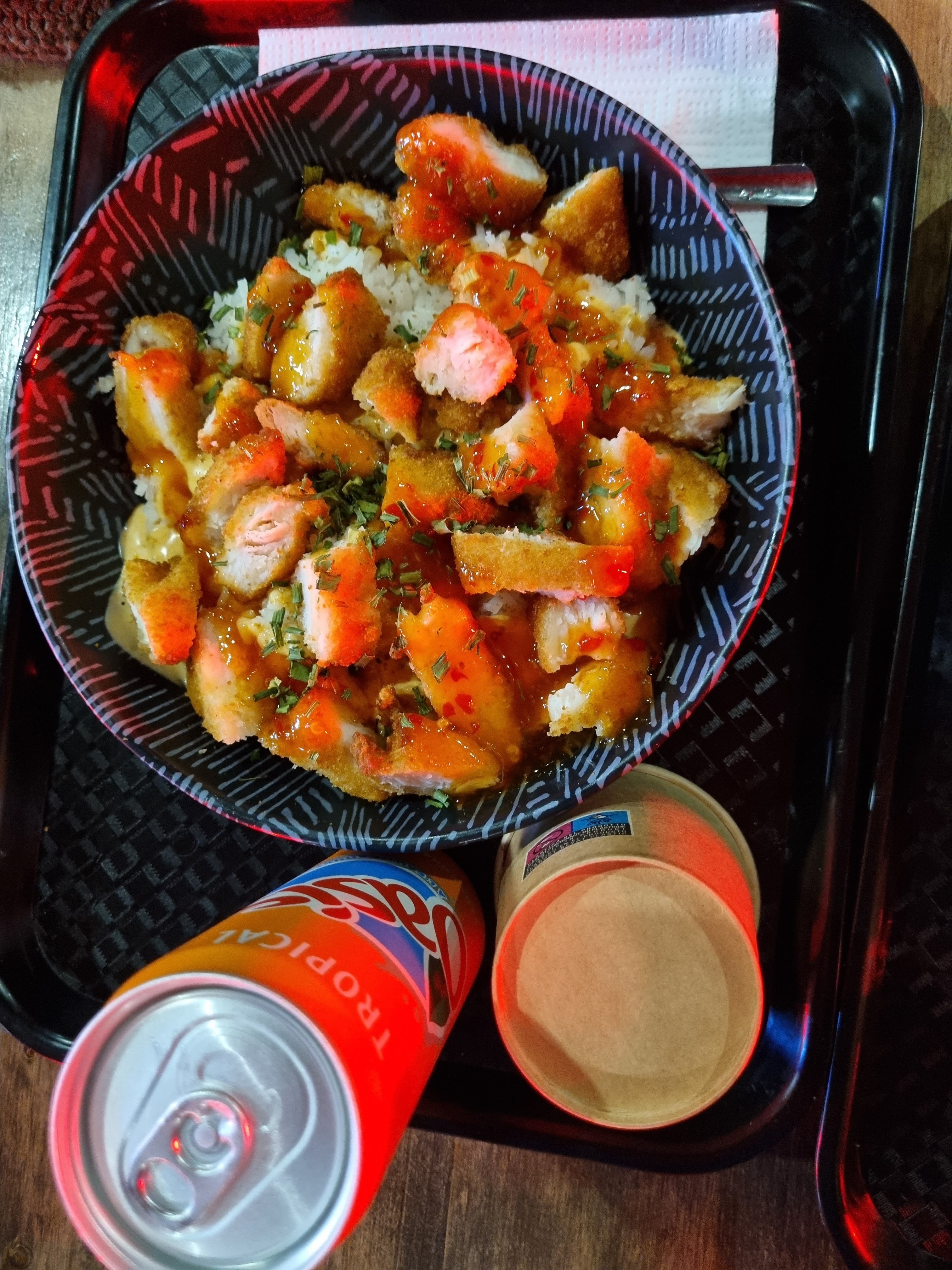 Ambiance glauque. Une serveuse désobligeante, désagréable et condescendante. Et le repas …….. le riz cru, vous vous êtes contenté de mettre de la sauce bbq et de la mayo sur du riz pas cuit waaw bravo pour l’effort. Je suis sortie du resto pour me reprendre un sandwich à la brioche doré. Ah j’allais oublier, l’hygiène est déplorable ! Les tables qui collent car pas nettoyées depuis des lustres. L’odeur de la vieille huile de friture pas changée depuis des semaines 🤢. Bref une première expérience qui confirme ma dernière visite chez vous. Sayonara !