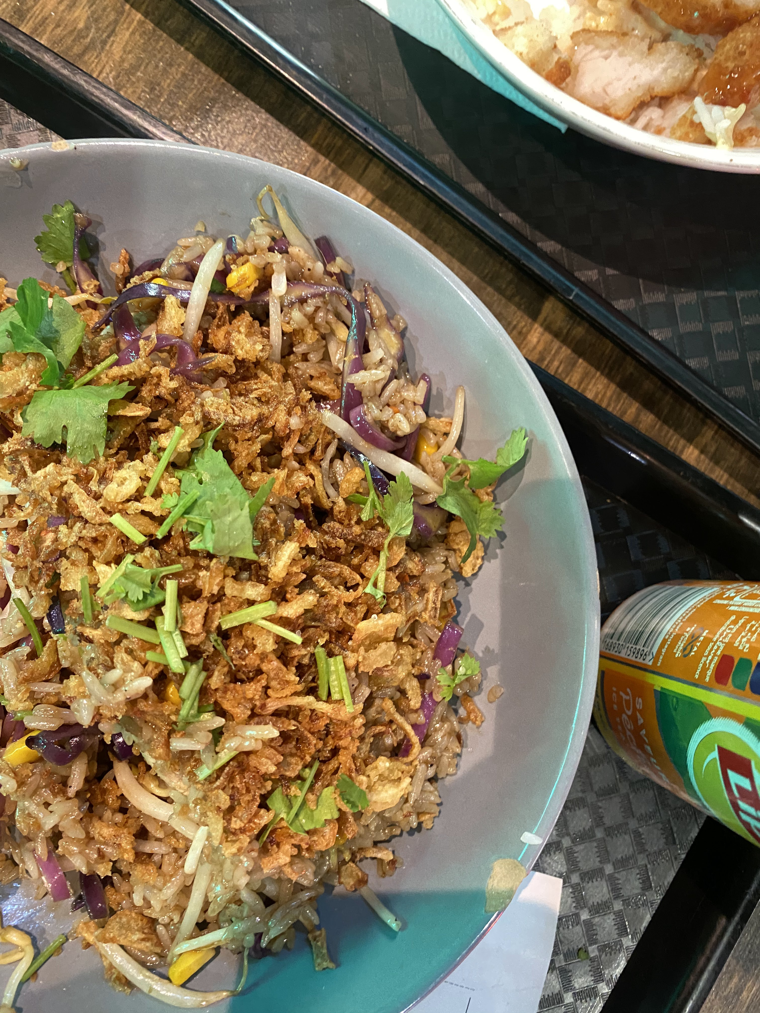 Lieu nouvellement ouvert. L’idée était bonne pour le reste… la salle est hyper bruyante nous avons préféré retourner au bureau. 30 minutes pour récupérer 3 plats (servis la première au moins 15 min avant mes amis mon plat était à peine chaud du coup). En même temps peut être logique vu que aucun thaïlandais qui y travaille donc ils ne maîtrisent peut être pas bien les recettes… Les couverts et serviettes n’avaient pas été mis pour une de nous alors que nous avions pris à emporter. Au final les Bo bun étaient sans saveur et moi j’avais payé pour un poulet chaï barbecue et j’ai eu un poulet chaï normal donc un plat moins cher…. Vu qu’il nous restait à peine 15 min pour manger je n’ai pas eu le temps d’y retourner pour me le faire changer. Il n’a pas non plus été spécifié que la viande était halal. Bref on s’était dit que c’était bien d’avoir une offre différente des burgers and co mais grosse déception.
