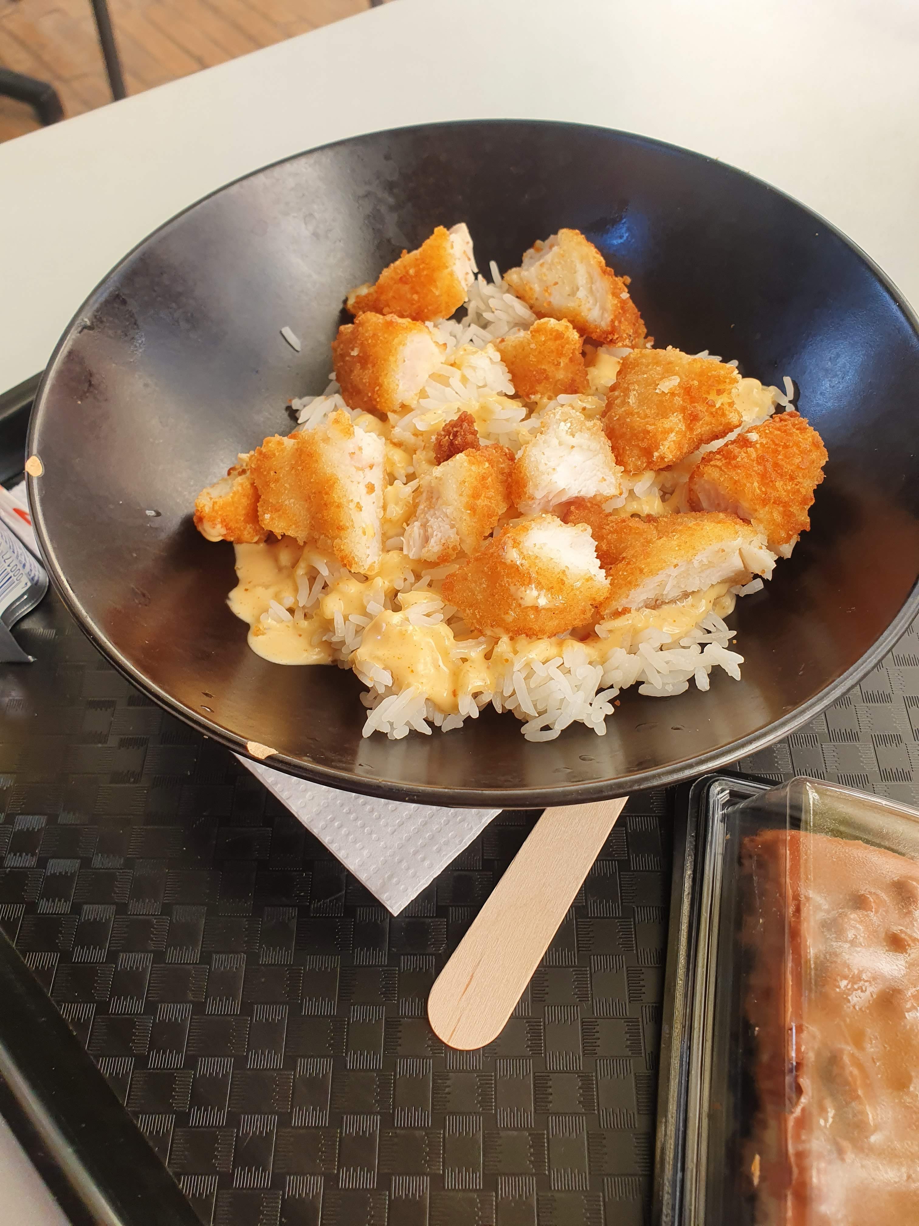 Je viens de commander un poulet chai j’ai toujours commander le même depuis l’ouverture ils étaient excellent mais aujourd’hui j’avoue avoir étais un peu déçu de la quantité de riz 😔 a peine un peu repartie au fond de l’assiette en carton. Histoire de recouvrir le fond avec des bouts de tenders je pense cramer je ne comprends pas avez vous changer le cuisinier ? Pourquoi si peut de quantité les Nems étais passable par contre super sympa a toujours offrir un petit quelque chose au enfant la dame en revanche pas très cool mais d’habitude le personnel est vraiment trop gentille