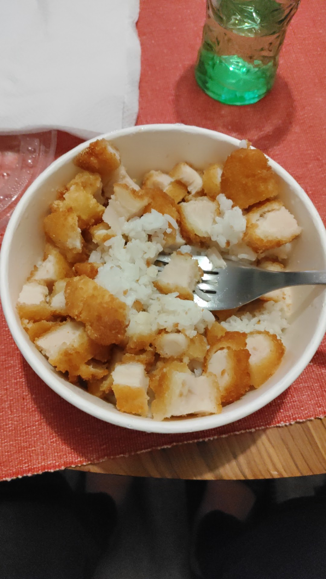 Insipide, on peut difficilement faire plus basique et sans goût, le poulet 'est absolument pas croustillant. C'est pas mauvais mais il y a t il vraiment une différence avec un plat micro-ondable de chez Picard ? Je ne pense pas.