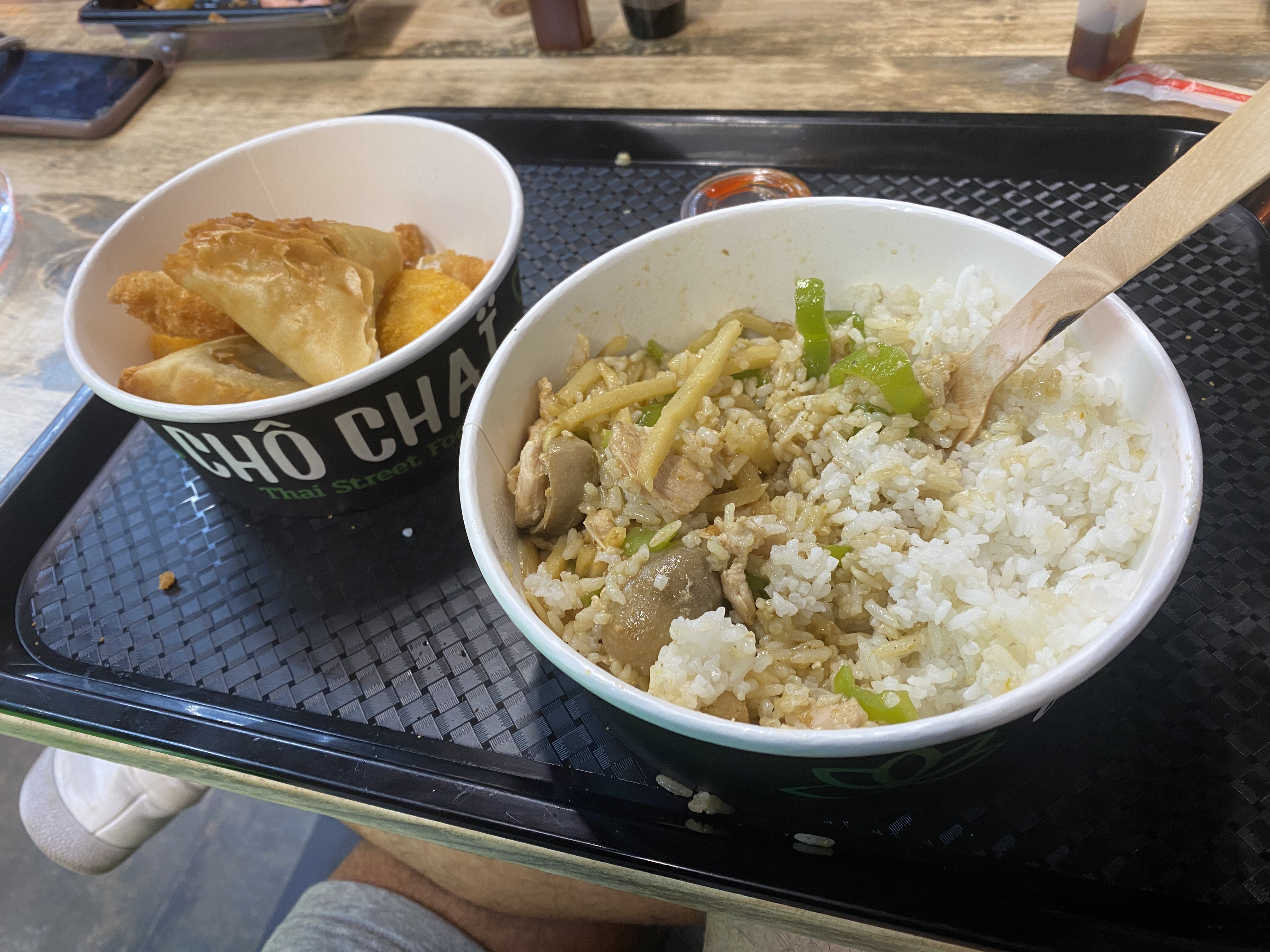 J’ai commandé un riz au poulet curry vert. C’était pas mal. J’ai pris en plus des sides avec samoussa beignet crabe et tempura 🍤 c’était bon sans être renversant. Le service est rapide courtois et professionnel 👍🏼 L’ambiance et le décors sympathique mais les néons sur le côté font mal au yeux le soir, nous avons alors changé de place.