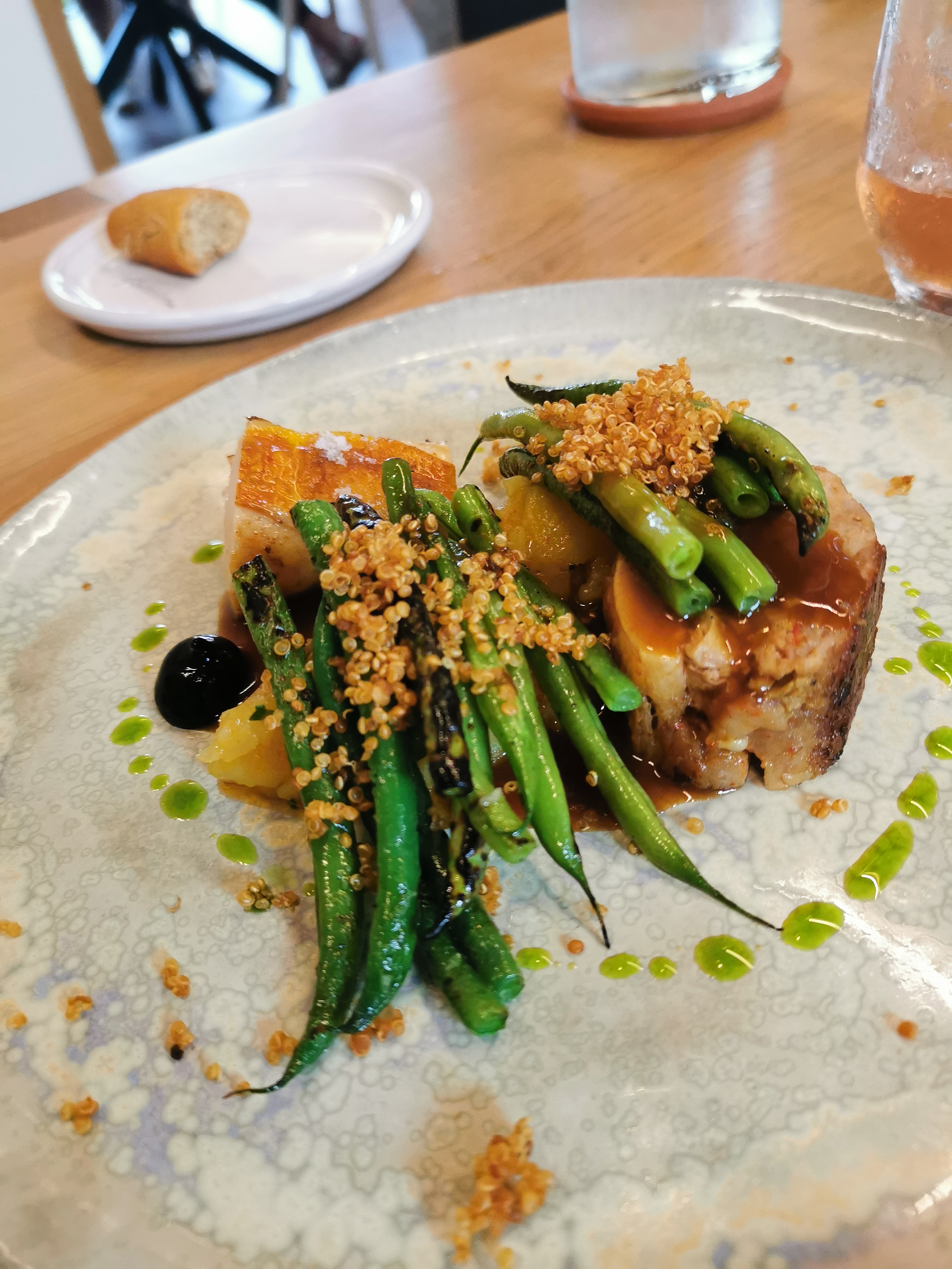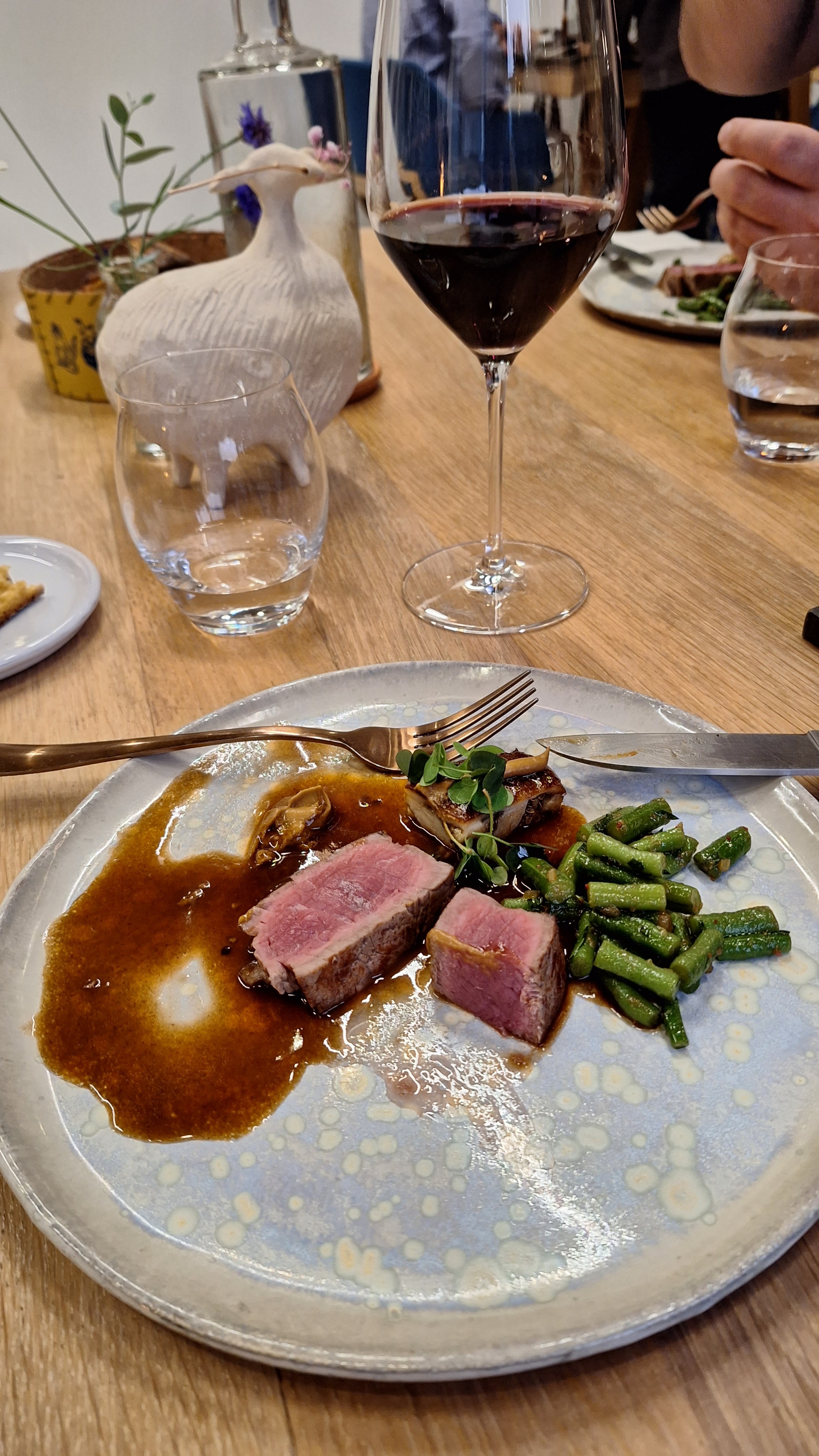 Ambiance simple, moderne et naturelle pour cette très jolie table tout juste étoilée ! Équilibre dingue et produits au top, avec un accord mets-vins génial. Bravo à vous 🎉