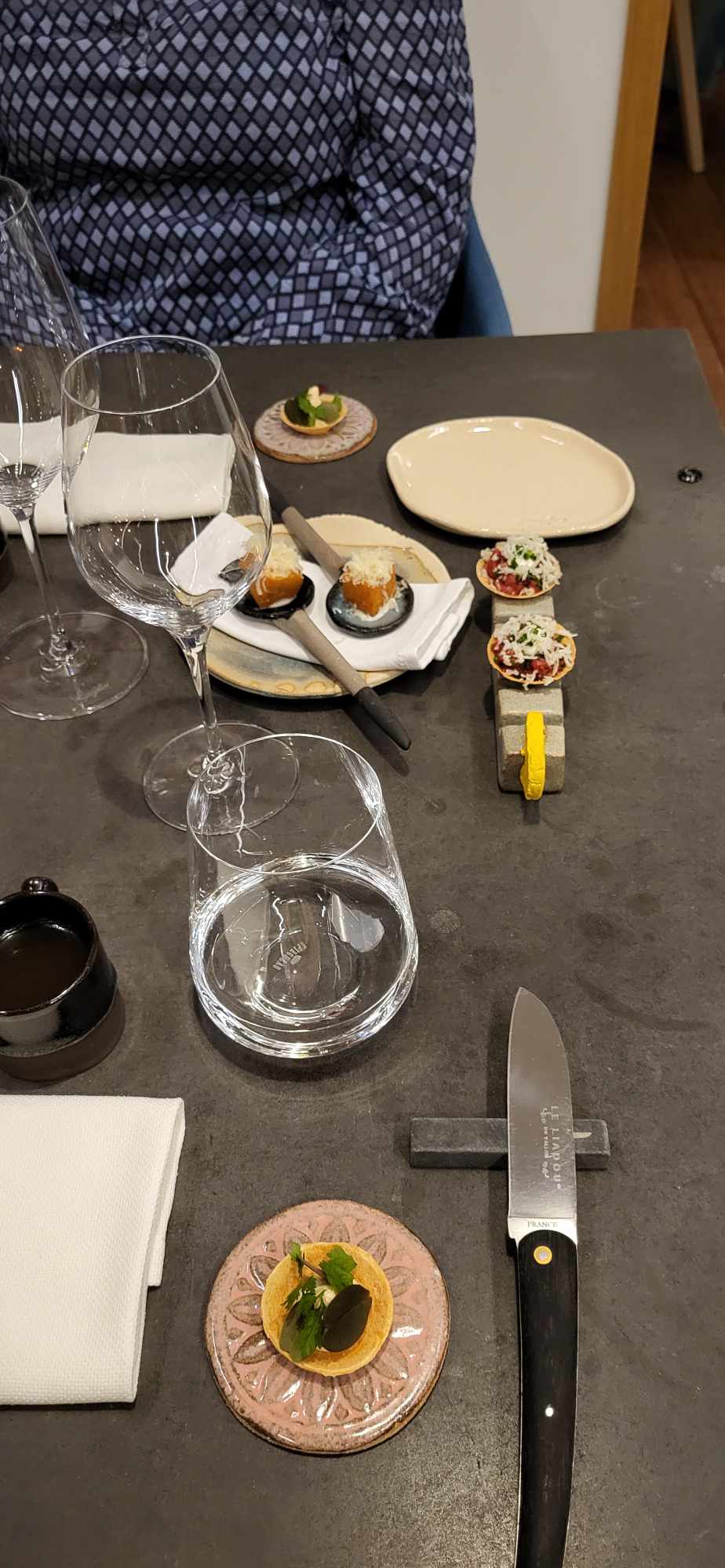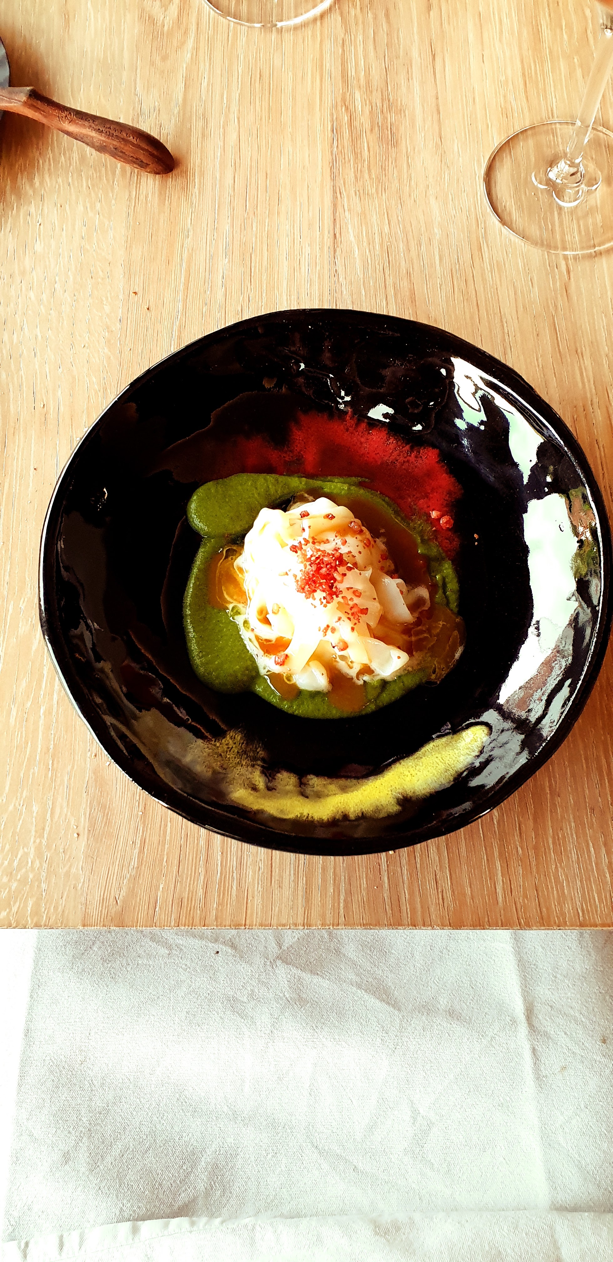Très belle balade gastronomique dans un endroit cosy où un grand soin a été apporté jusqu'au moindre détail, la déco, la vaisselle ( magnifique) et bien sûr les plats qui s enchaînent dans une belle harmonie. Bref une expérience très agréable avec un service et un accueil impeccables.