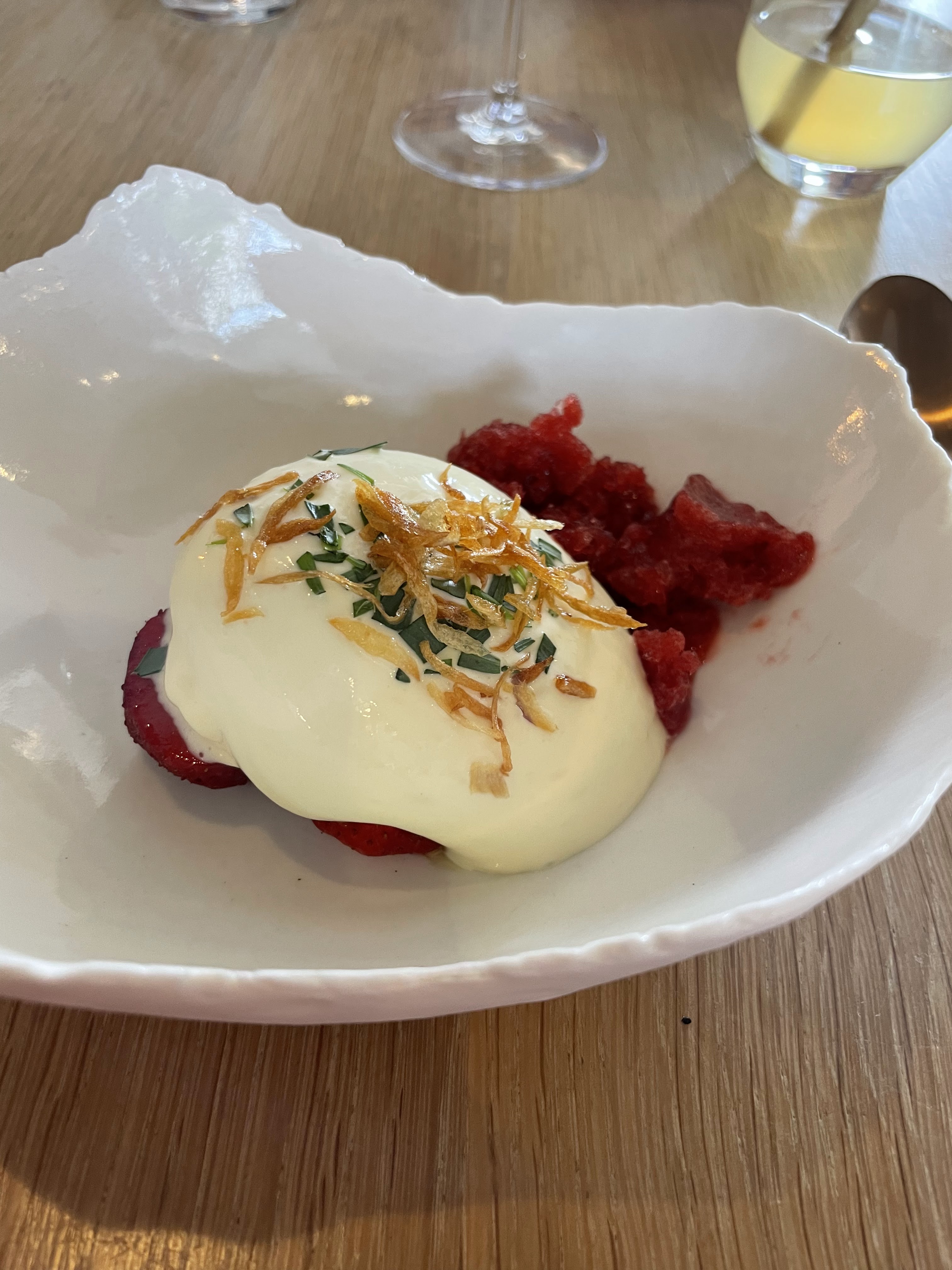 Une délicieuse expérience culinaire, de doux mélanges de saveurs, c'était aussi beau que bon ! Chaque personne de la jeune et dynamique équipe est passionnée par son travail. Étant végétarienne elles se sont adaptées à ma demande. Le cadre est magnifique... Bref, tout était parfait 👌🏼