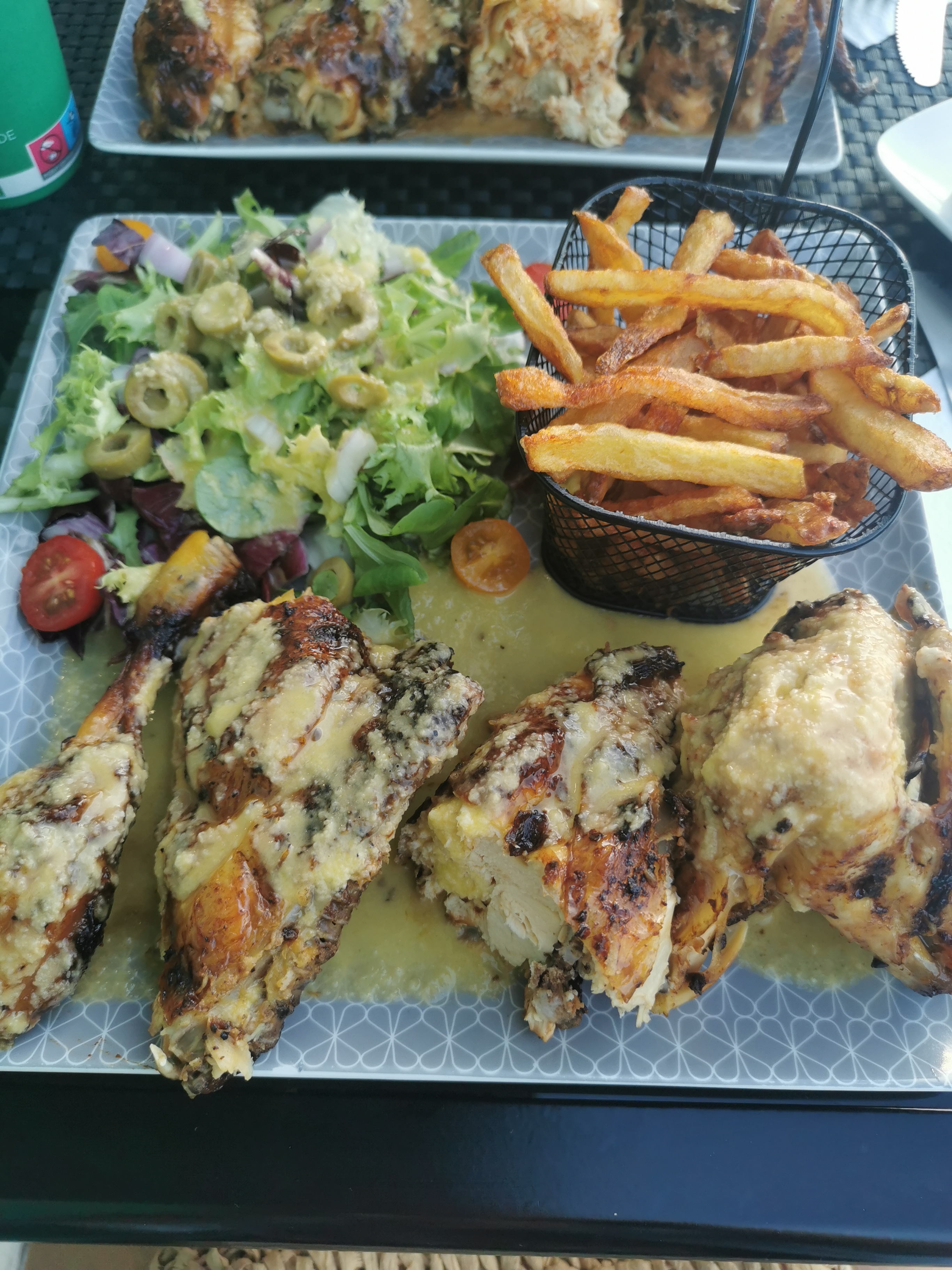 Très bon poulet, frites maison, et salade fraîche. Accueil sympa. Je recommande 😊