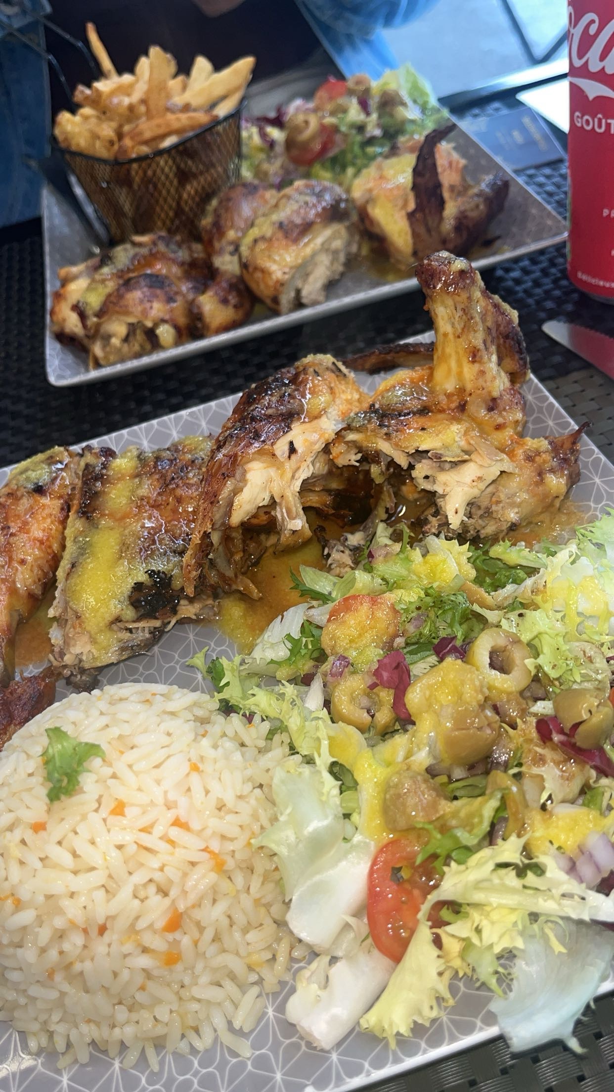 C'est le meilleur poulet de la région 😍à essayer aussi le poulet piquant un vrai délice avec les frites fraîches
