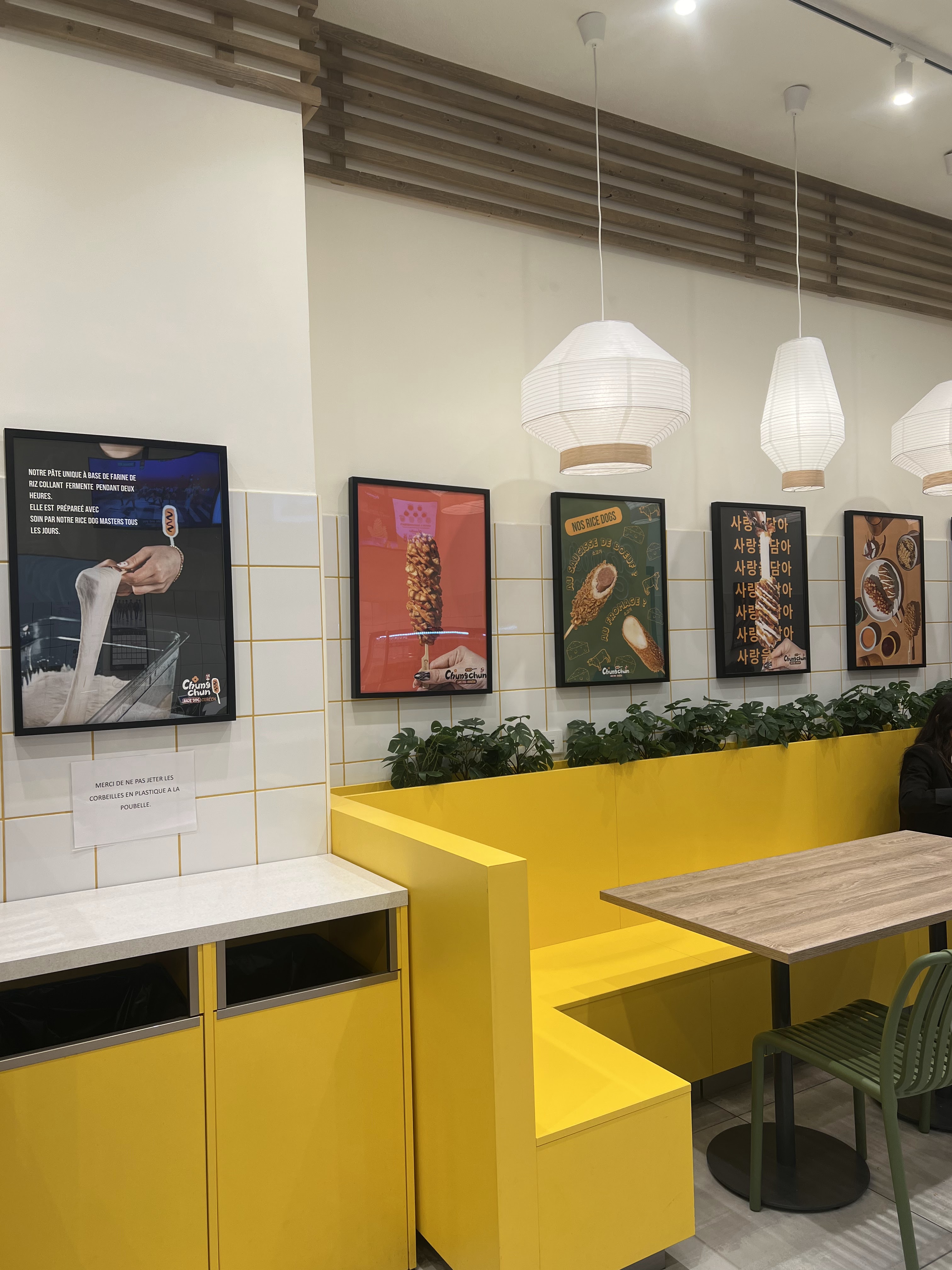 Endroit chaleureux, avec une bonne ambiance, c'est la première que je goûte à des rice dog ,c'était TELLEMENT DÉLICIEUX !🥰🫰, en plus on peut regarder de la Kpop , j'adore 🥰😍🎶