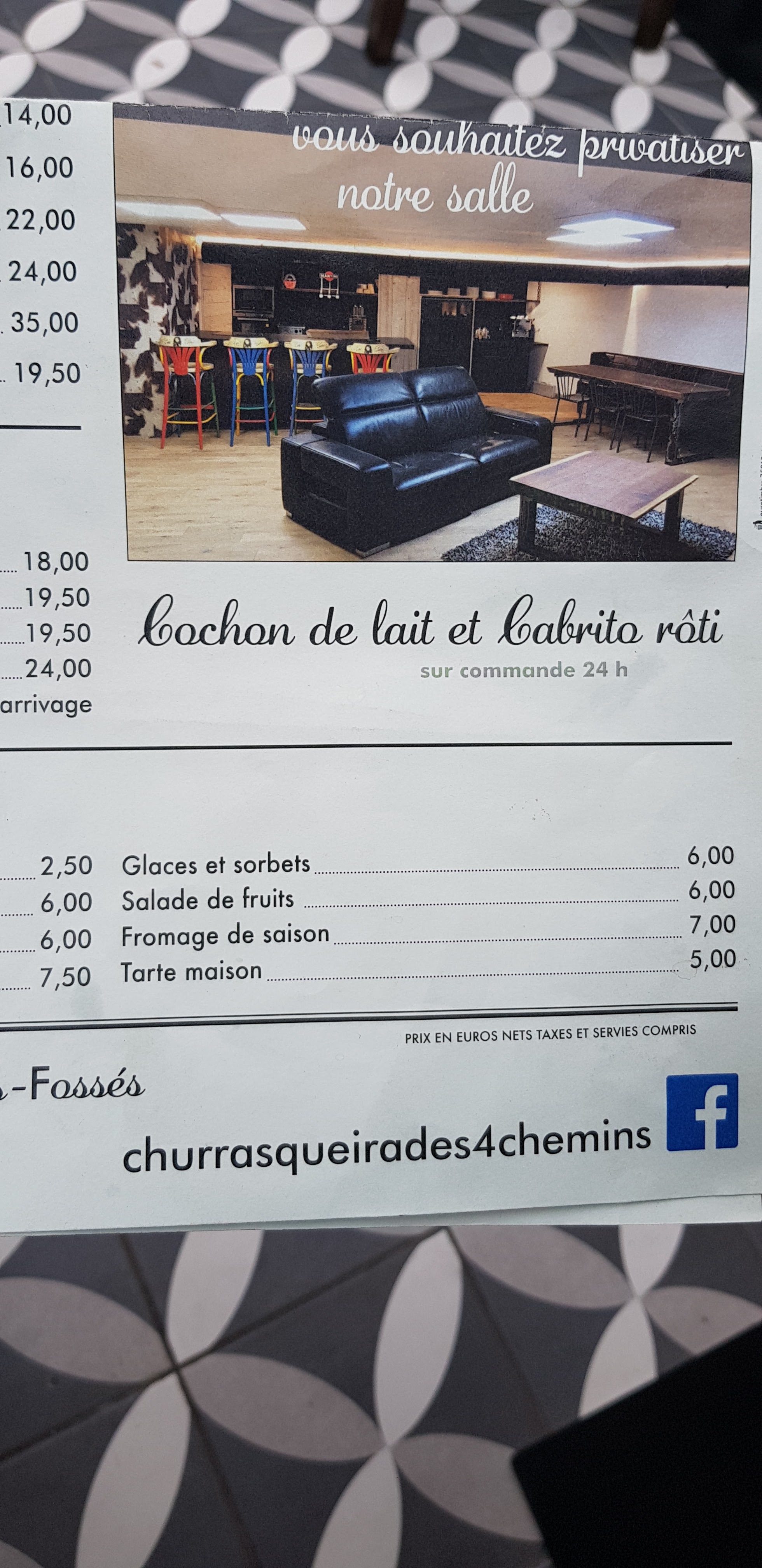 Le poulet le plus sec du Val de Marne Mdr et le travers encore pire c'est importe quoi quand je voi les avis des personnes jhalucine allez chez almeida au pont e Créteil ,cantinho si churasco a champigny ou le roi du poulet là oui c'est bon les 4chemins c'est le plus pourri que j'ai fai grave
