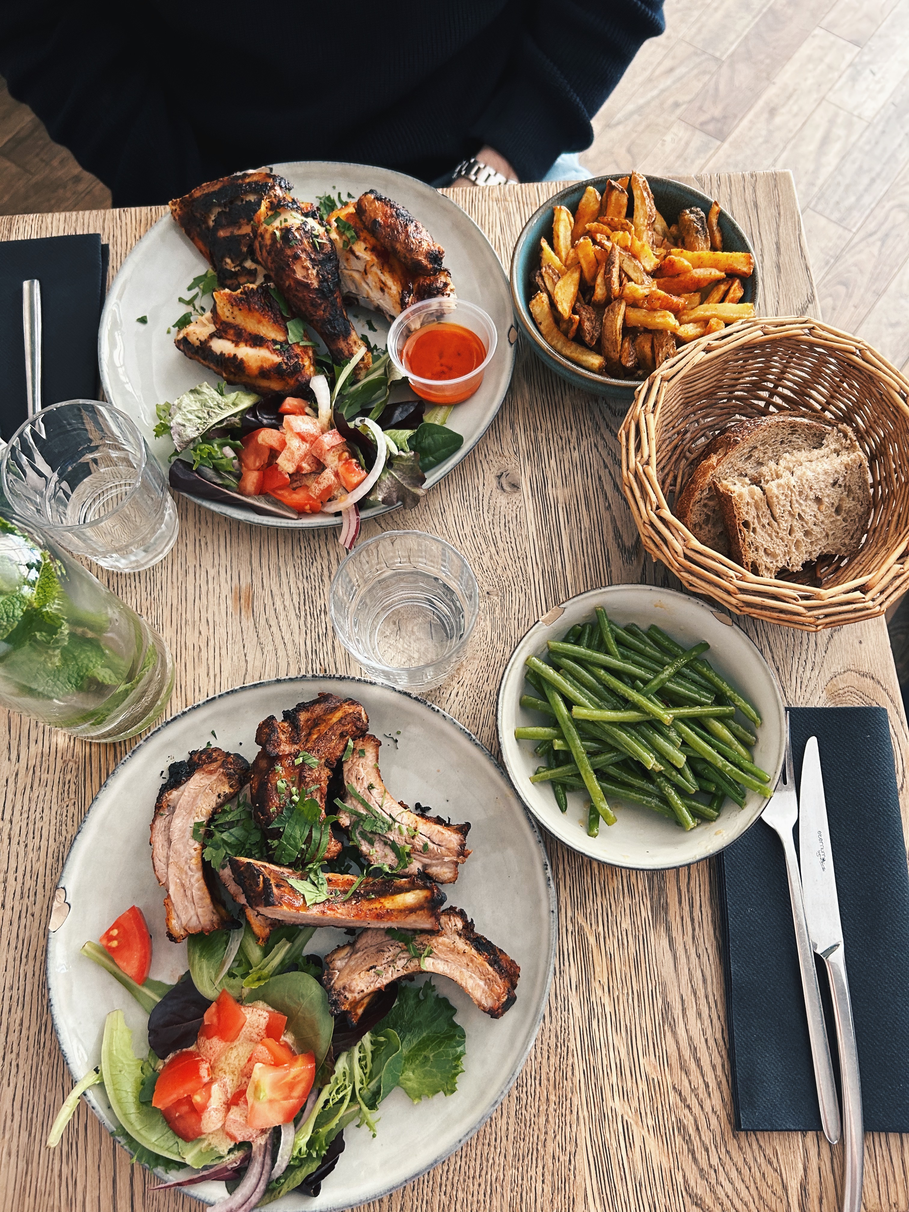 Un bel accueil du personnel dynamique, les plats ont du goût c’est bon mais il n’y a RIEN à manger clairement. Nous étions 8 et les 8 avaient encore faim en sortant du restaurant avec plat + dessert et vin, cocktail. Le poisson est digne d’un poisson surgelé d’une célèbre enseigne (pas mauvais mais ridicule), le Ribs est coupé nous avons 5 os qui se battent en duel dont certains sans viande. L’accompagnement est léger mais bon. C’est bien dommage parce que c’est bon, mais les quantités pour un enfant de 5 ans et encore. Sur notre faim…. Dommage !