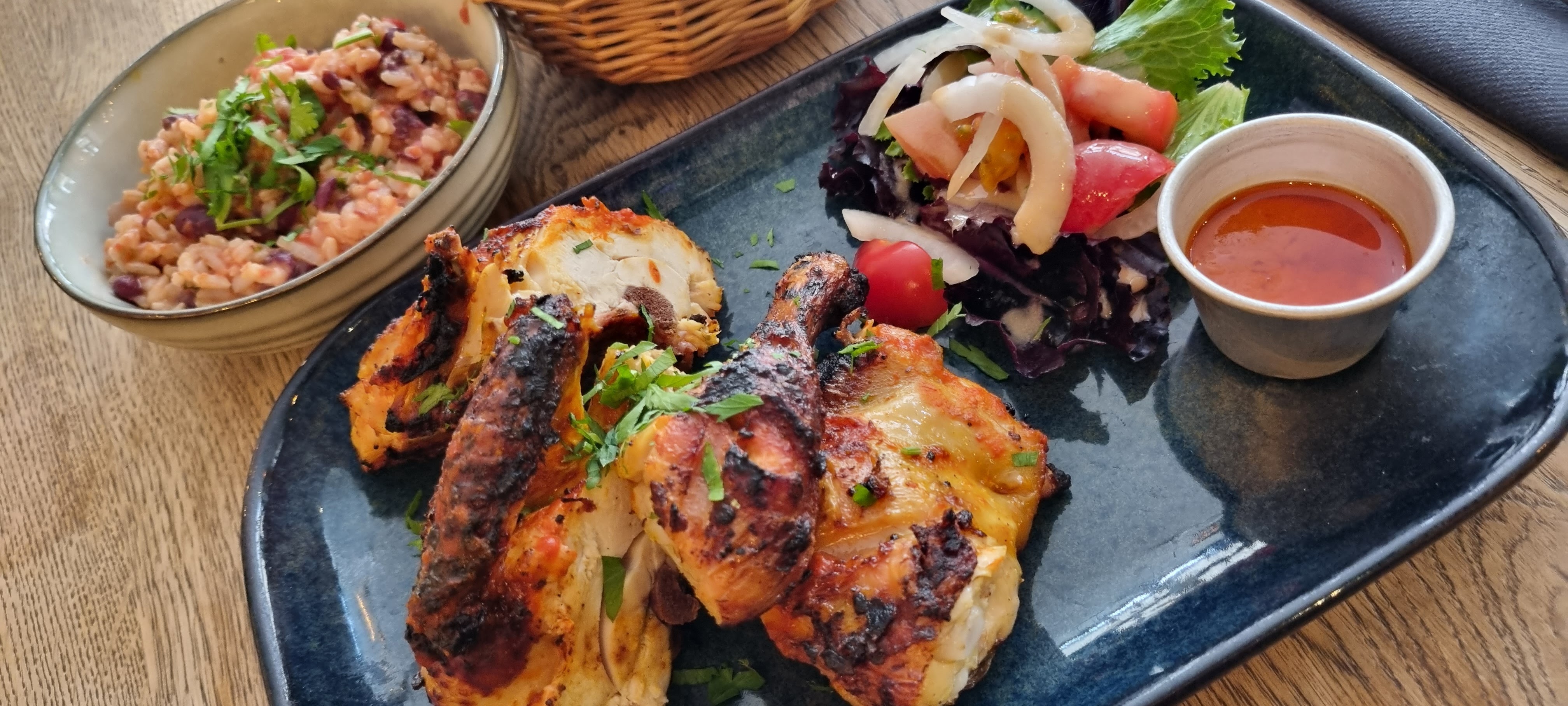 J'aime bien quand l'expérience culinaire est au rendez-vous ; quand la peau du poulet rôti croustille par exemple, que le poulet soit fermier ou en tout cas de qualité. Que le riz soit pas trop mou et pas aggloméré aux haricots. Bref, c'était ok mais ça mériterait un peu plus d'attention en cuisine car le résultat ressemble trop à de la nourriture de chaîne, ce qui lui retire de son intérêt. C'est d'autant dommage que la déco est sympa.