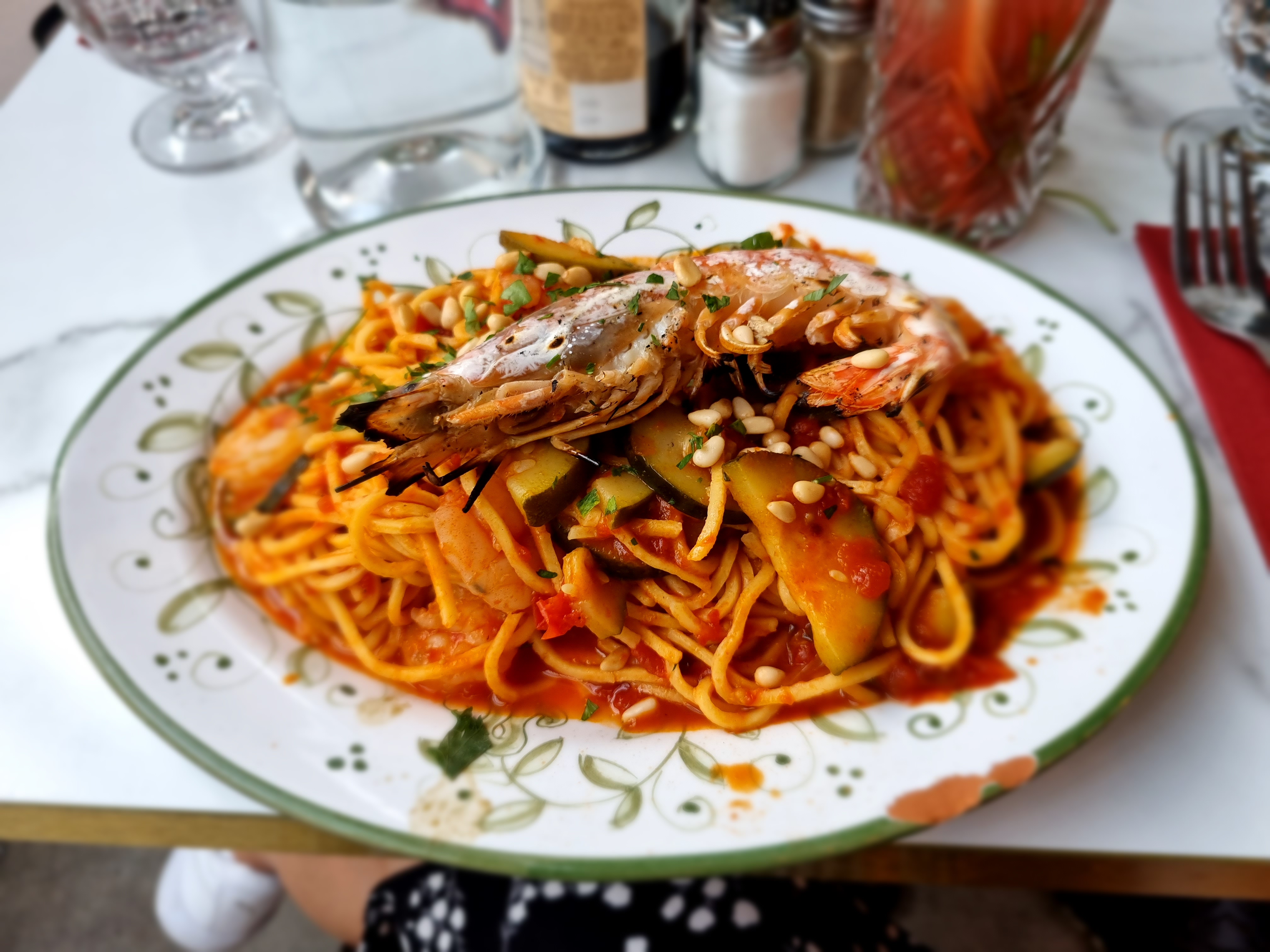 C’est un restaurant mêlant à la fois bonne cuisine, service rapide et cadre agréable. Les pâtes carbonara sont bien préparées, peu écœurantes et la pizza goûteuse (Di Bianchino). Quant aux desserts, il faut noter que le tiramisu est bien réalisé, léger et peu sucré (il manque cependant un peu de goût) et la coupe de glace est bonne (coupe pistache), bien qu’elle ne relève pas de l’exceptionnel. La cuisine n’est pas le seul point fort, le lieu est lumineux et bien décoré. C’est un restaurant qui vaut le détour !