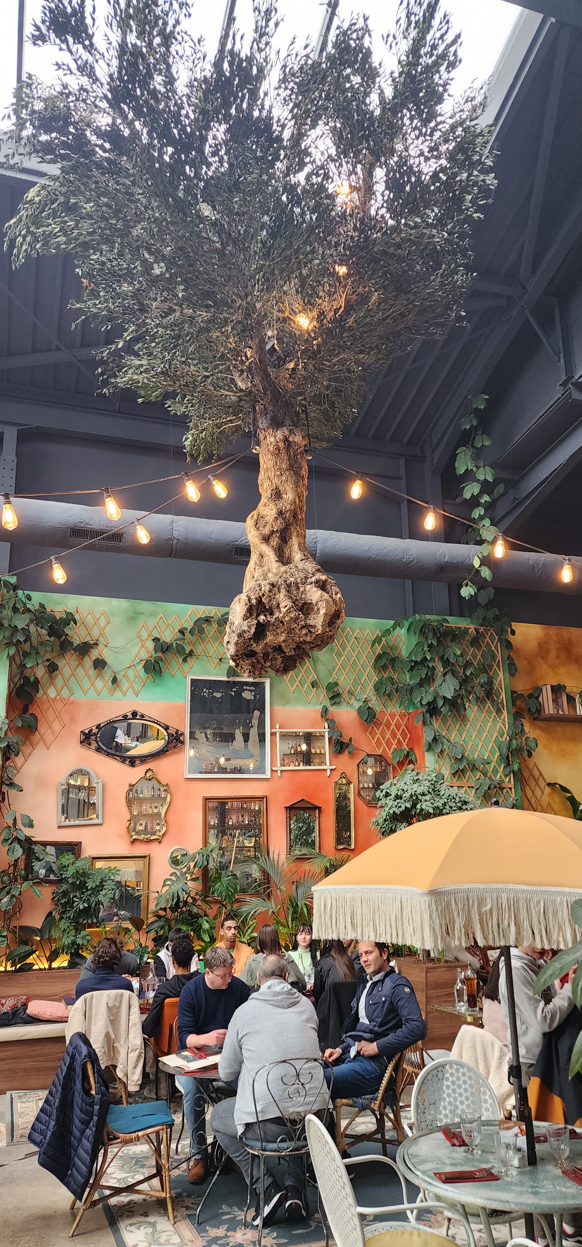 On est d'abord surpris par la décoration, des arbres suspendu, et d'autre au sol, des tables un peu partout. On a l'impression d'être dans une ville italienne. Nous avions réservé donc pas de problème pour avec une table. Après un cocktail très agréable, nous avons pris un copieux entrée plat dessert. (seulement pour les plus gourmands) Tout était délicieux, l'entrée de charcuterie et fromages servie avec de la carta musica m'ont rappelé les séjours chez ma nonna. Une bouteille d'huile d'olive est présente sur la table et tant mieux un bon plat italien s'accompagne toujours d'un bon trait d'huile d'olive. Les pizza son copieuse et délicieuse, les suggestions de saisons son très bien pour ceux qui veulent de la diversités. Le dessert était doux pour terminer cette dégustation en beauté.