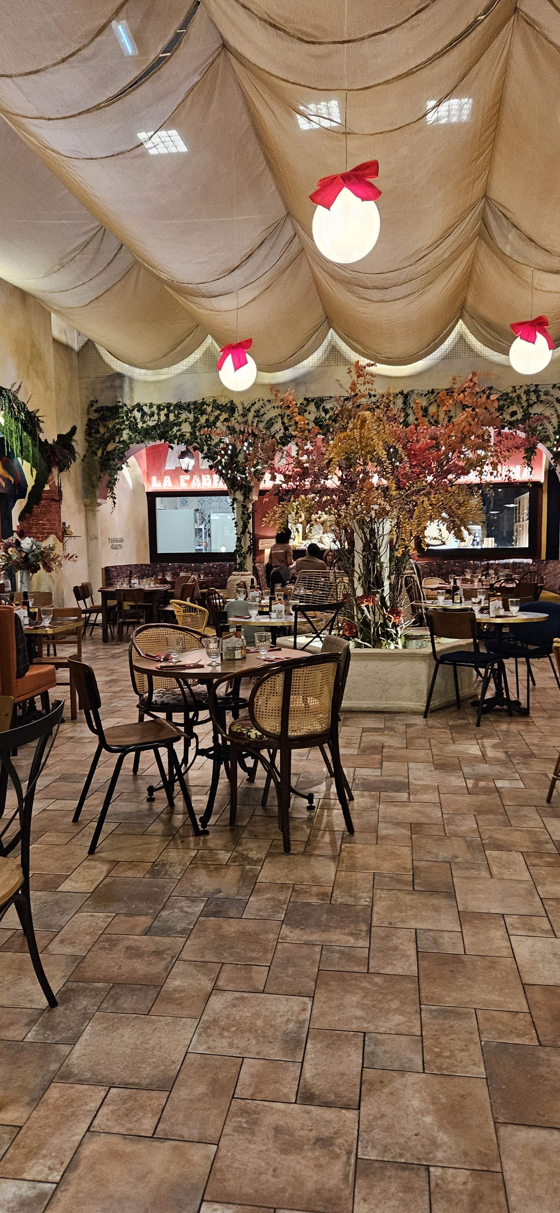 Un restaurant magnifique de par sa déco: arbre suspendu, fontaine, banquette, mobilier, vaisselle, plein de petits coins sympathiques. Une ambiance très agréable. Un personnel efficace et chaleureux. Ns avons passé un très bon moment Encore merci