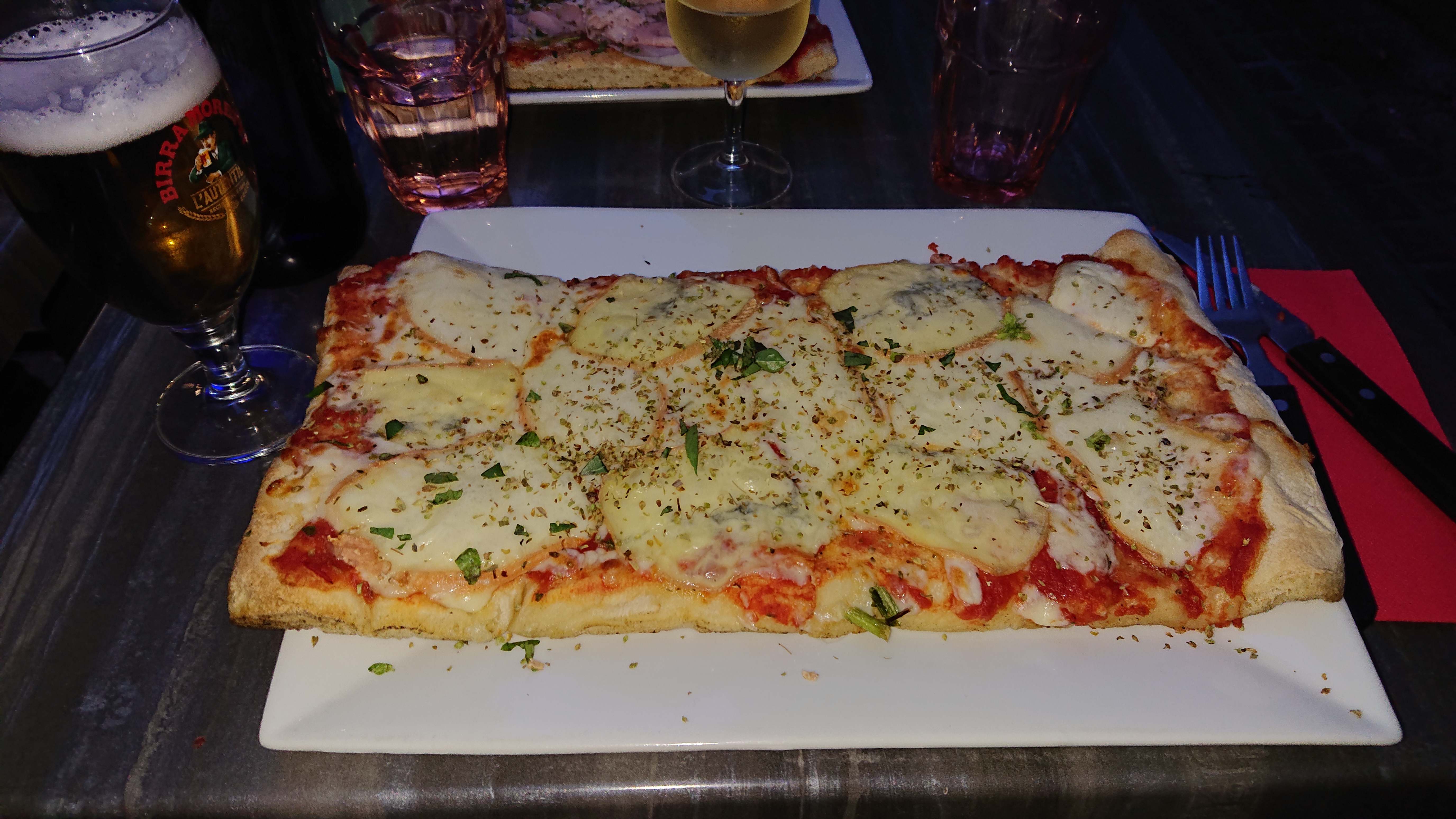 Pizzas de grande qualité. Personnel aux petits soins avec une serveuse aussi pétillante que notre Lambrusco.