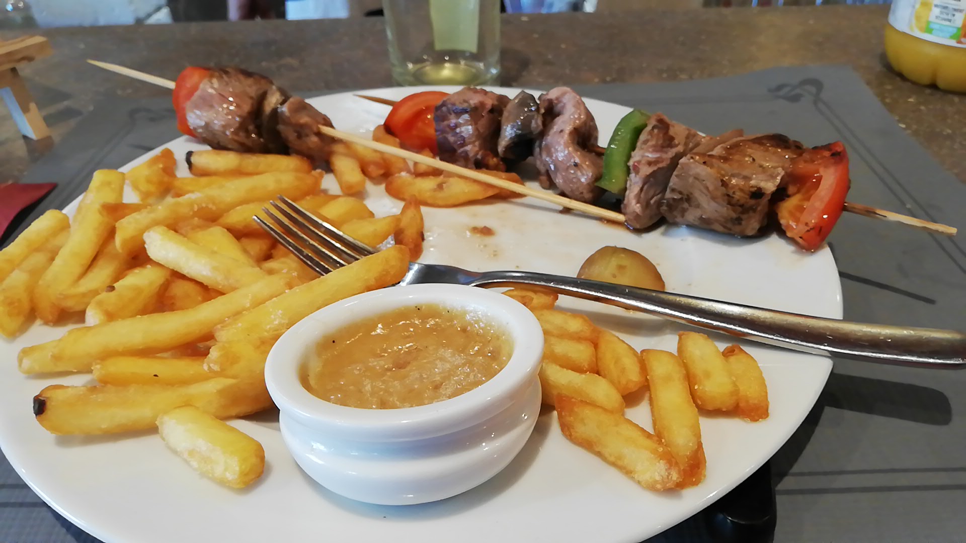 Nous étions de passage pour les vacances, je ne recommande pas ce restaurant. D'accord, pour un menu enfant à 8€50, il était proposé saucisses frites, je m'attendais à une saucisse traditionnelle, sauf est arrivée dans l'assiette de mon fils deux saucisses de Strasbourg. Ensuite, il ne nous a pas forcément laissé le choix au niveau de la carte, il nous a proposé un menu a 15€ avec trois plats au choix, quand j'ai voulu choisir autres choses, j'ai recenti qu'il était gêné. Le restaurant reste très limite au niveau propriété (beaucoup de poussière). La nourriture reste soupçonneuse, mais nous n'avons pas été malade 😁 . Il est dommage d'avoir mis nos assiettes débarrassé juste sur la table à côté en vrac. Par contre, les toilettes étaient propres. C'est dommage que je sois obligé de mettre une étoile, alors que zéro étoile est une note méritée.