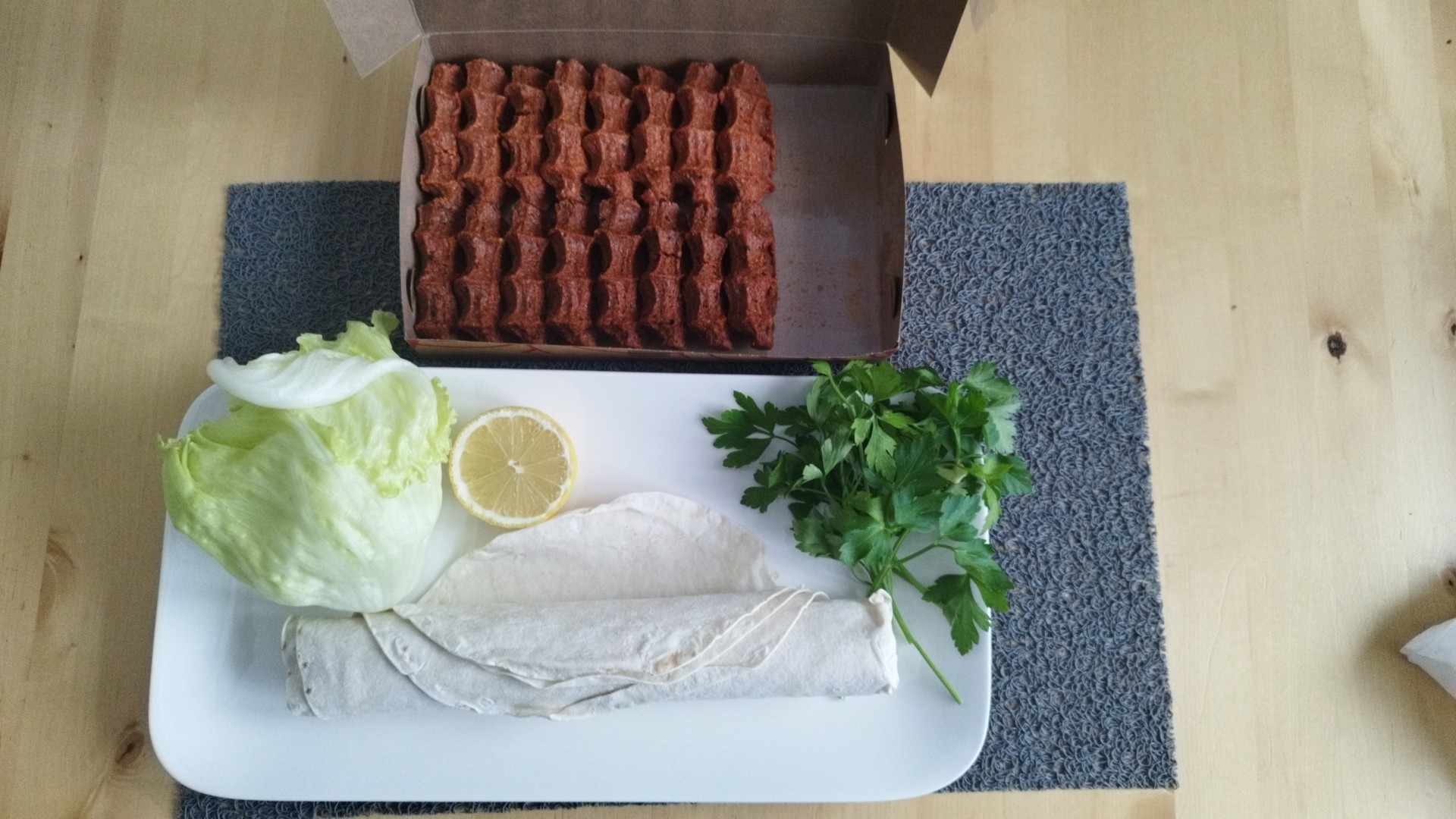 Pour une 1ère, je peux dire que je me suis régalée 😋👍 la pâte de boulghour est très bonne, bien assaisonnée, l'accompagnement aussi, grâce à la touche de citron frais pressé et le tout est fait sous nos yeux par un très gentil monsieur 👍 je recommande vivement pour tous ceux qui ne mangent pas de viande, le cigkoftem est une super alternative, en plus c'est sain et bourré de protéines 👌👍😁