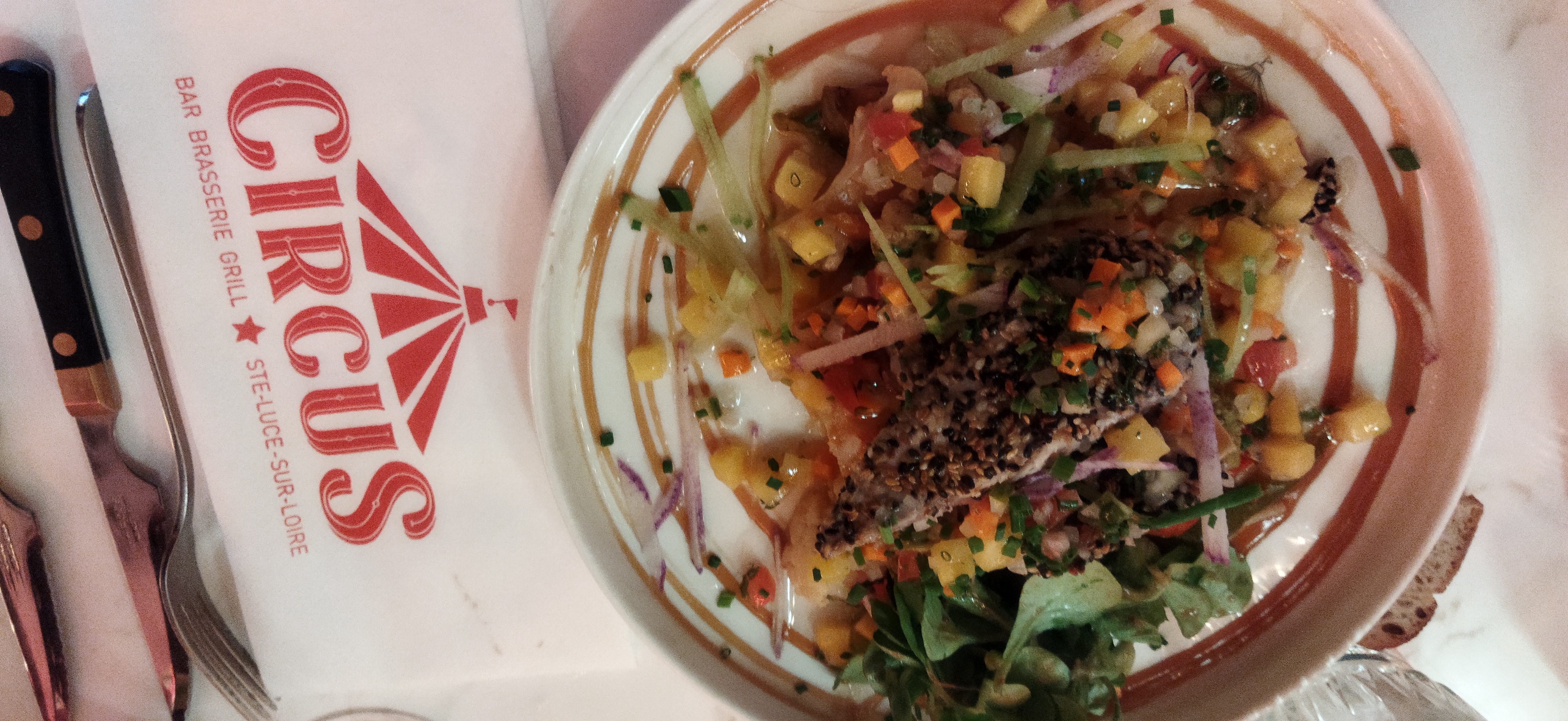 Cadre athypique avec pleins de couleurs et de décorations sur le thème du cirque. Carte variée, jolies assiettes et prix corrects. Accueil et service très sympathique de la part de l'équipe. Une très bonne adresse, à voir au moins une fois. Seul bémol, on s'attend à être reçu par Monsieur Loyal ou un clown.