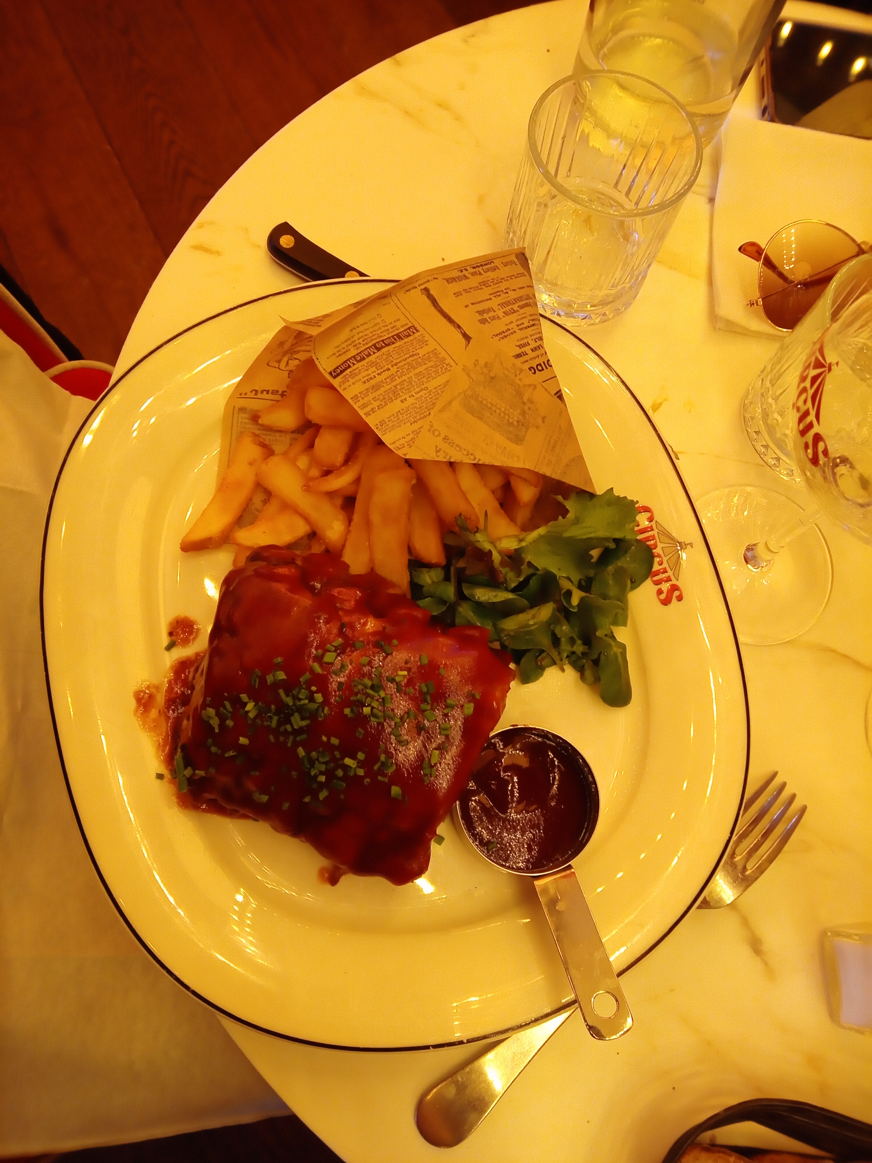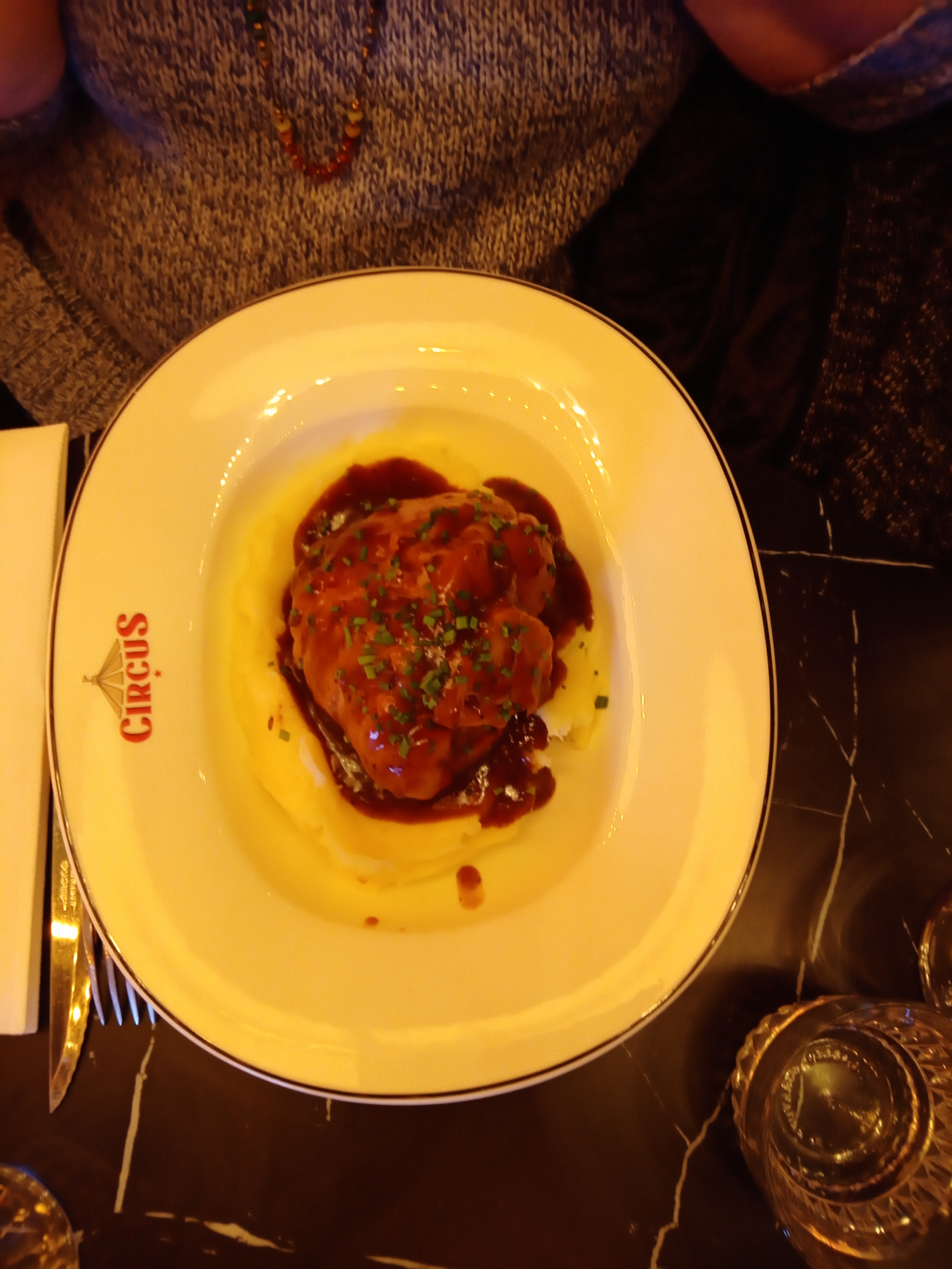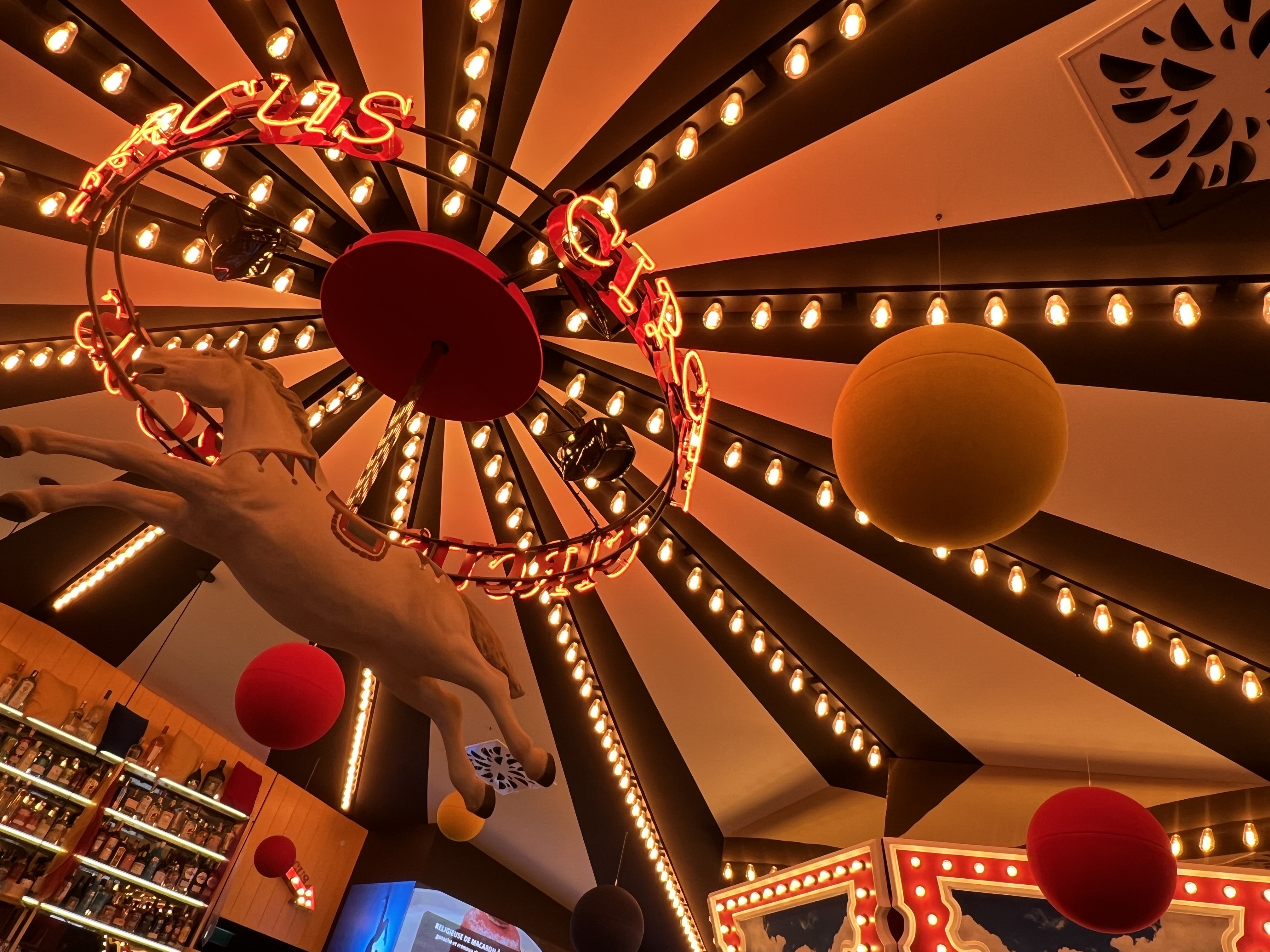 S'il y a bien une chose à retenir chez Circus c'est la décoration ! Celle-ci est vraiment unique en son genre et vous entrerez dans l'univers du cirque dès le pas de la porte. C'est très réussi ! Cependant quelques défauts sont à signaler, notamment l'acoustique, c'est bruyant. Nous étions au fond du restaurant, près des cuisines, et c'était sûrement la place la plus agréable. Mais là encore le jeu de lumières, changeant sans cesse, ne permettait pas de profiter un maximum de nos plats (voir photos au rendu jaune) Nous avons trouvé un peu cher le camembert rôti en entrée. 9€. Gros point positif, les triples burgers pour les gros mangeurs et le personnel très sympathique !