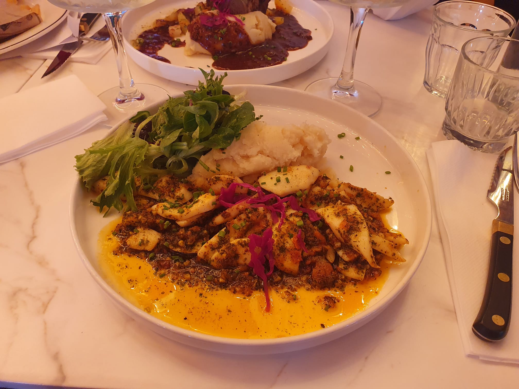 Excellent ! Cadre magnifique et décoration soignée, la cuisson de la viande (filet mignon et paleron) était impeccable Nous avons passé une très bonne soirée félicitations pour l'ouverture ! Tout petit bémol sur la luminosité de notre table, située sur l'estrade, les fluctuations de lumière étaient assez perturbantes pendant le repas mais rien de trop gênant. Nous reviendrons !