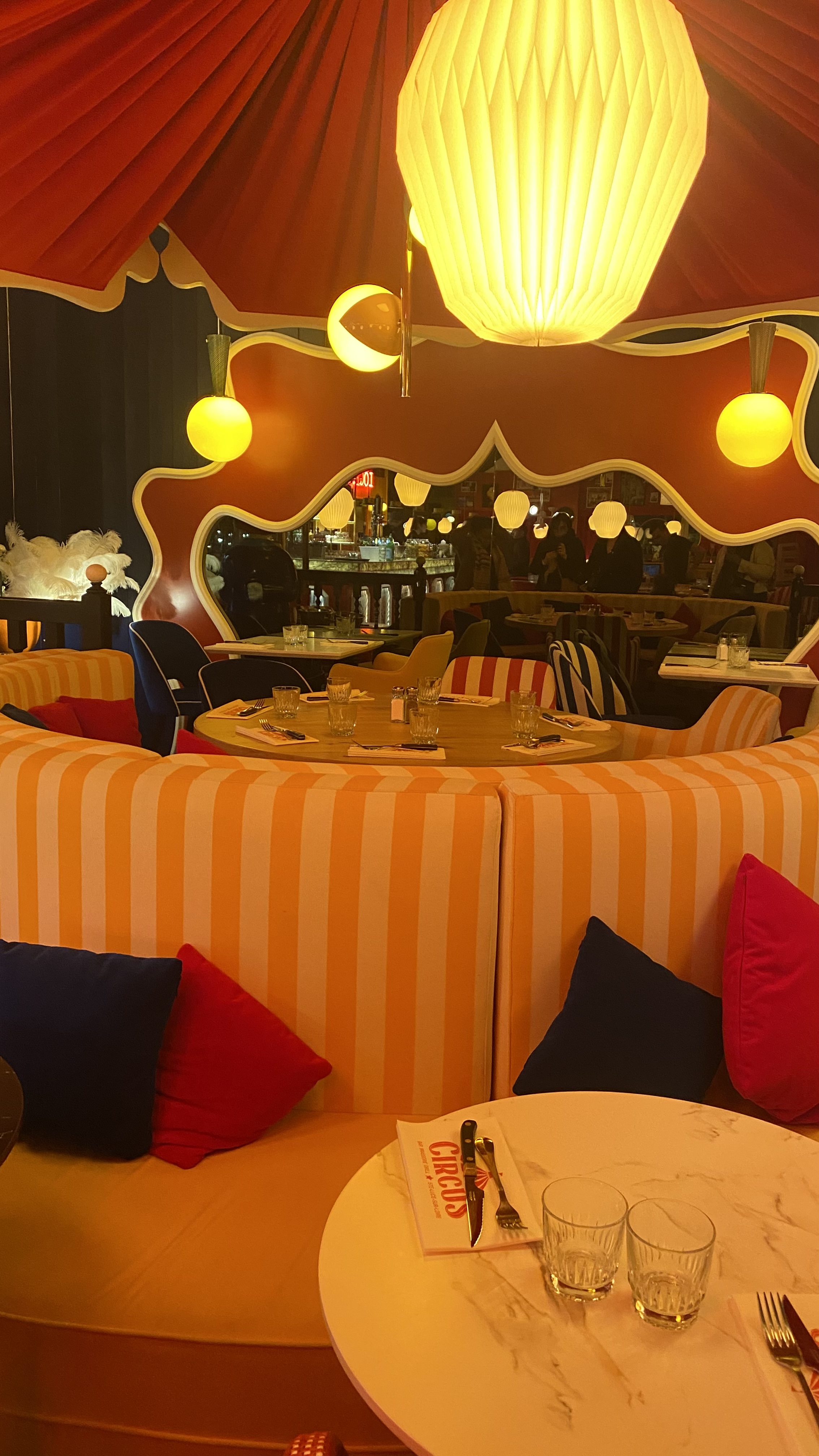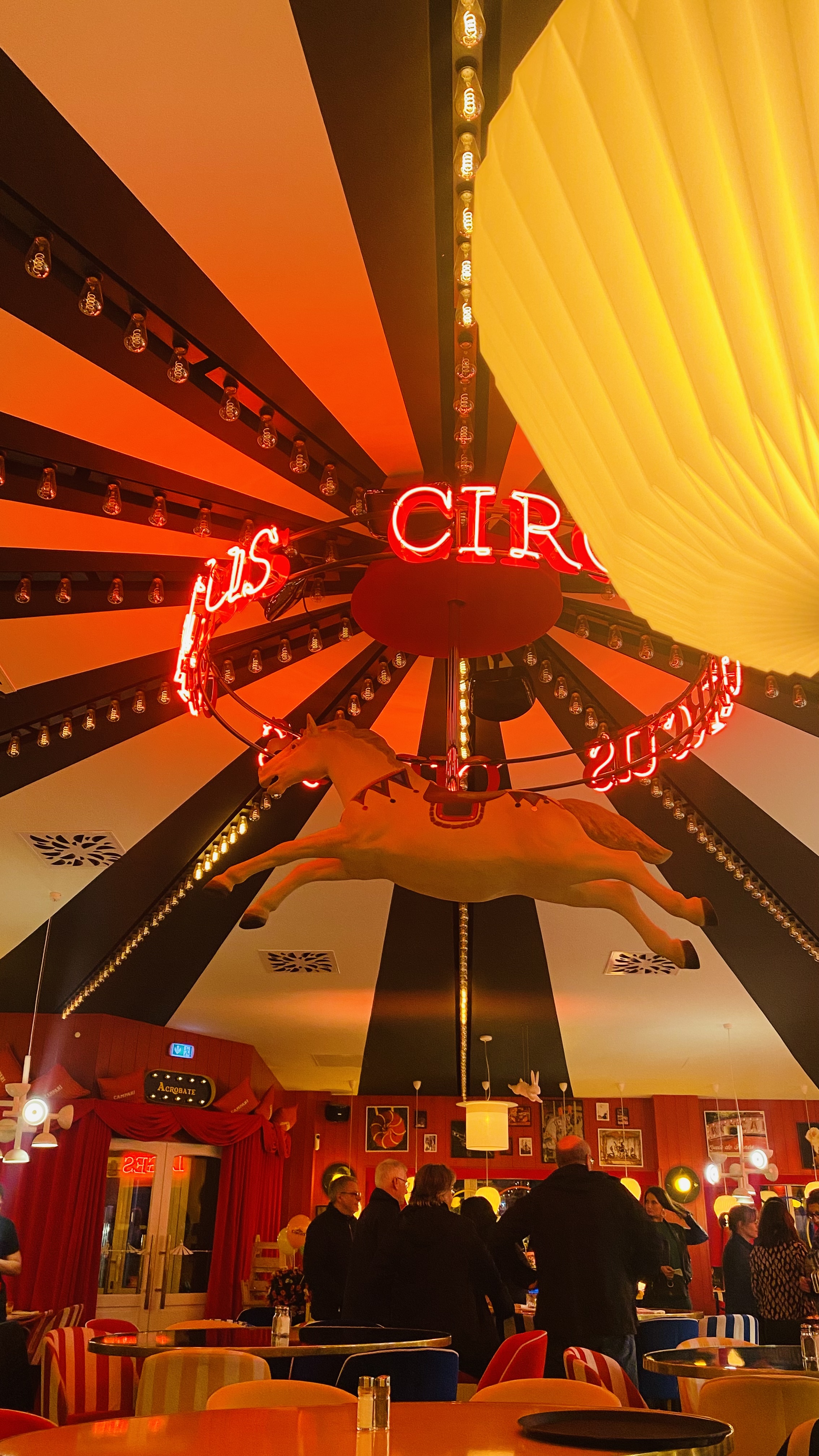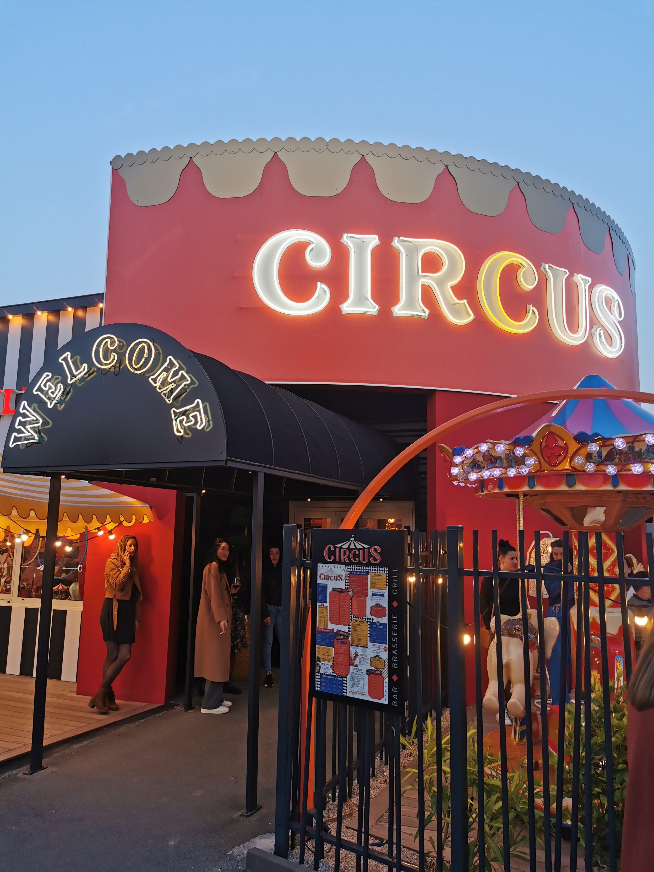 Une très bonne expérience chez CIRCUS, très bon repas (entrée, plat et dessert dans le menu prix abordable) La décoration est magnifique sur le thème du cirque, les serveurs sont très accueillants et gentils J'aurai juste voulu avoir + d'espaces à chaque table pour ne pas se sentir compresser mais ça peut être amélioré. Je recommande 😊👍