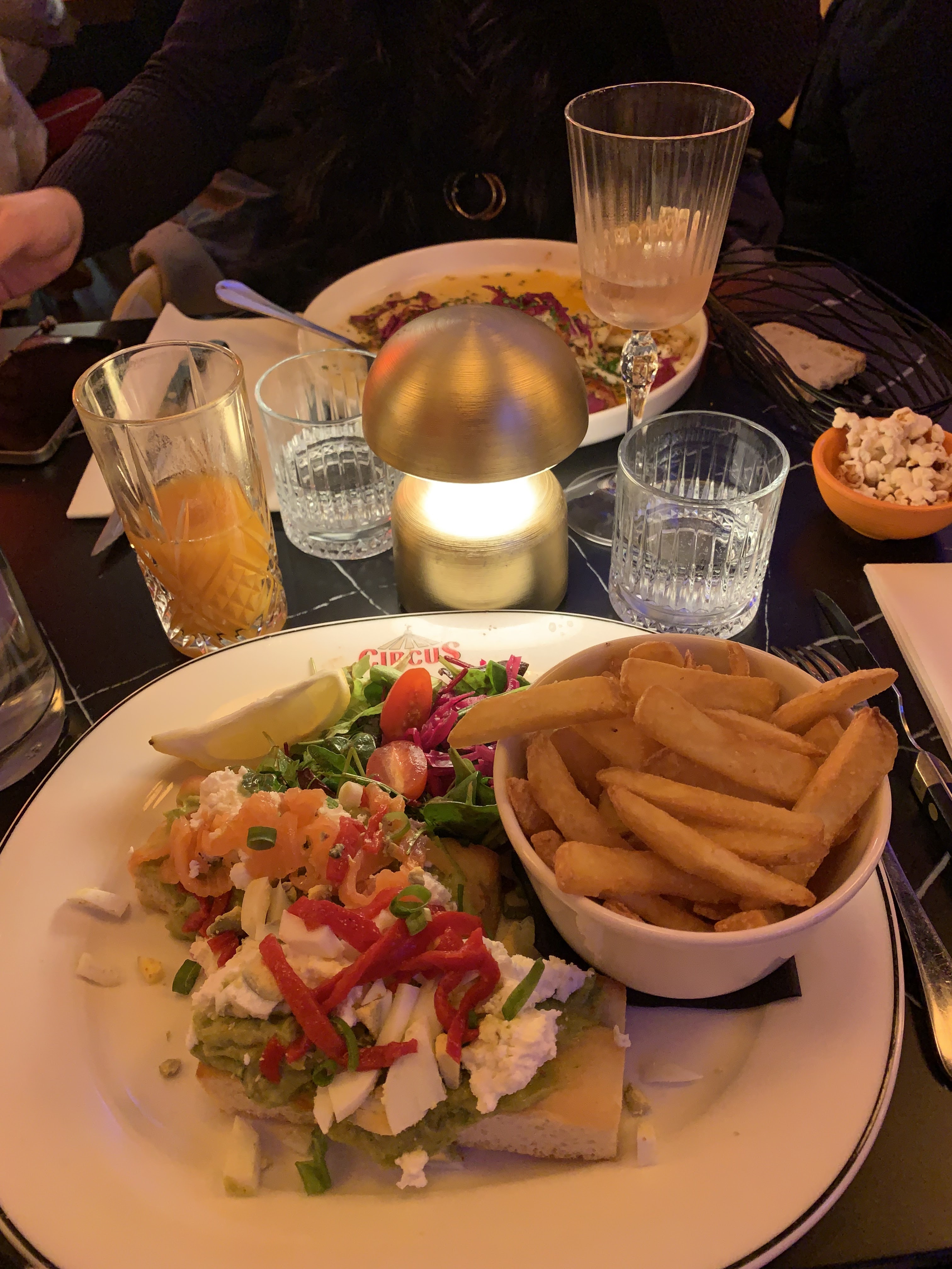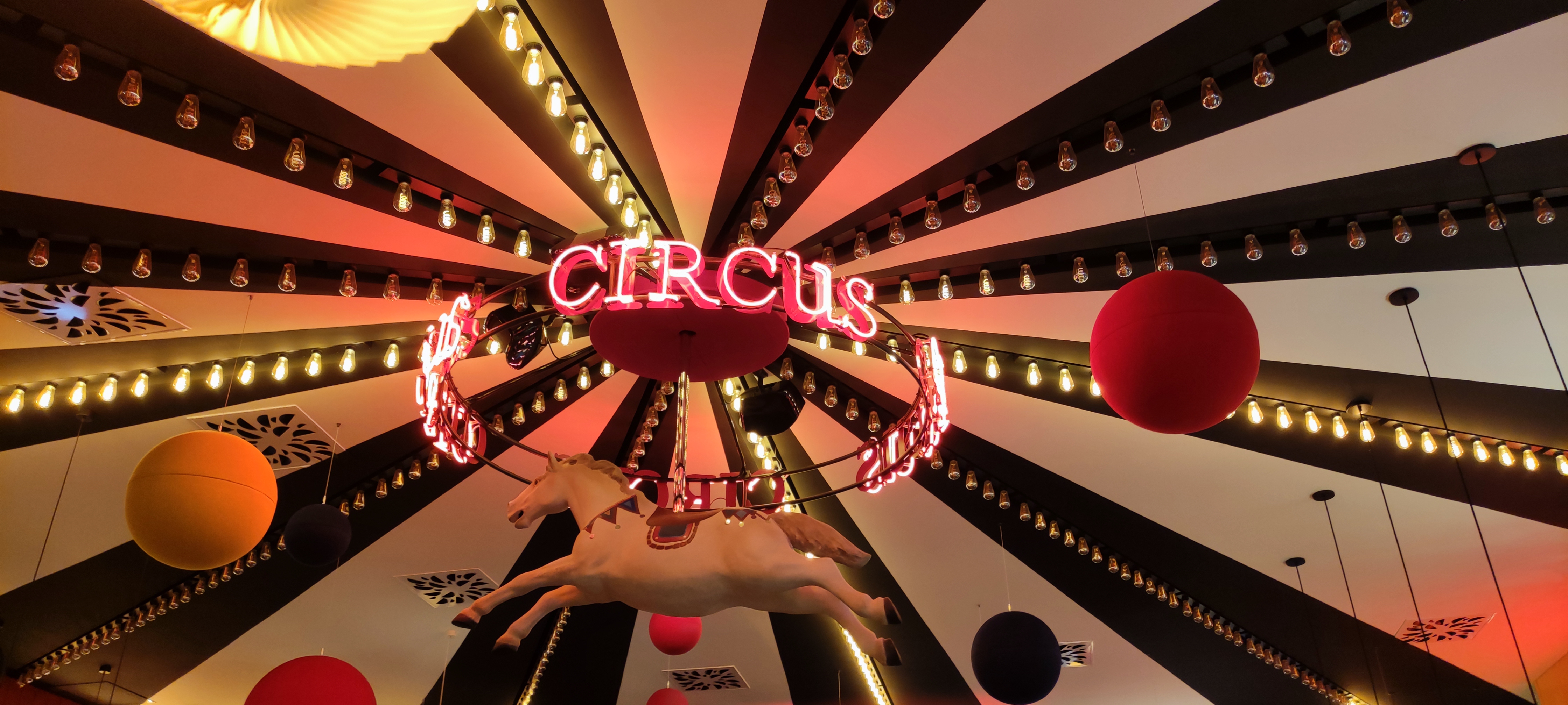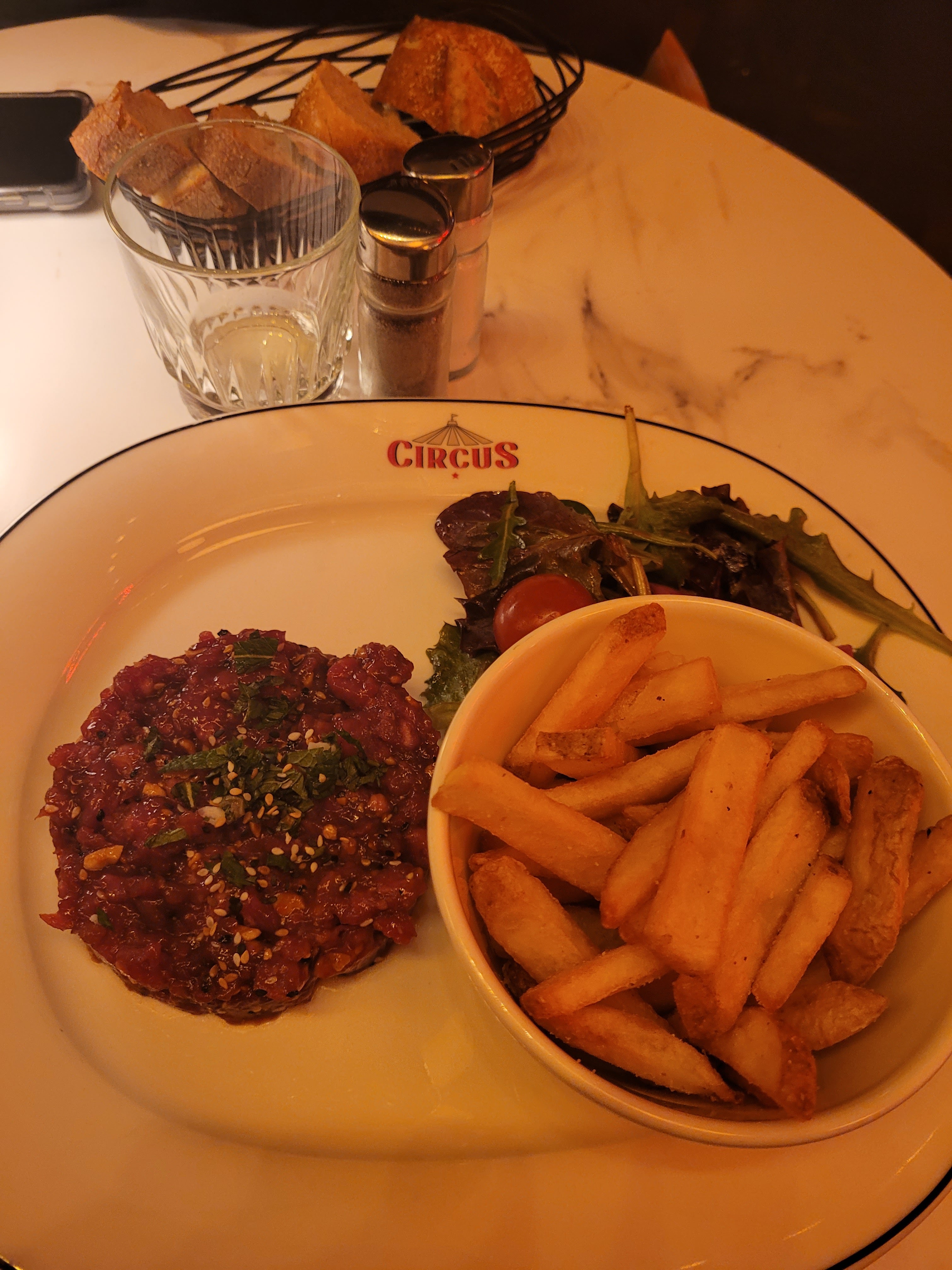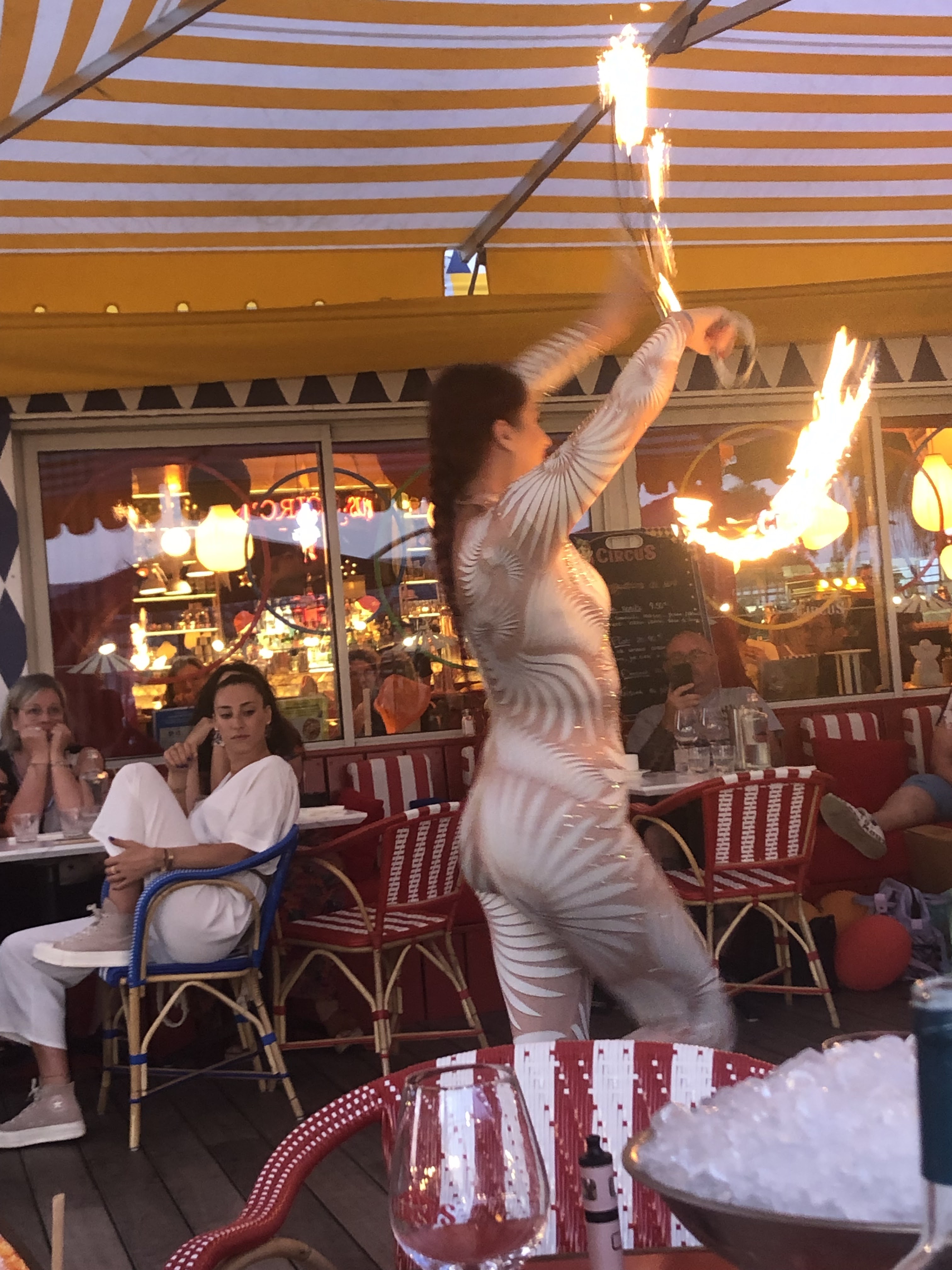 Une très bonne expérience chez CIRCUS, très bon repas (entrée, plat et dessert dans le menu prix abordable) La décoration est magnifique sur le thème du cirque, les serveurs sont très accueillants et gentils J'aurai juste voulu avoir + d'espaces à chaque table pour ne pas se sentir compresser mais ça peut être amélioré. Je recommande 😊👍