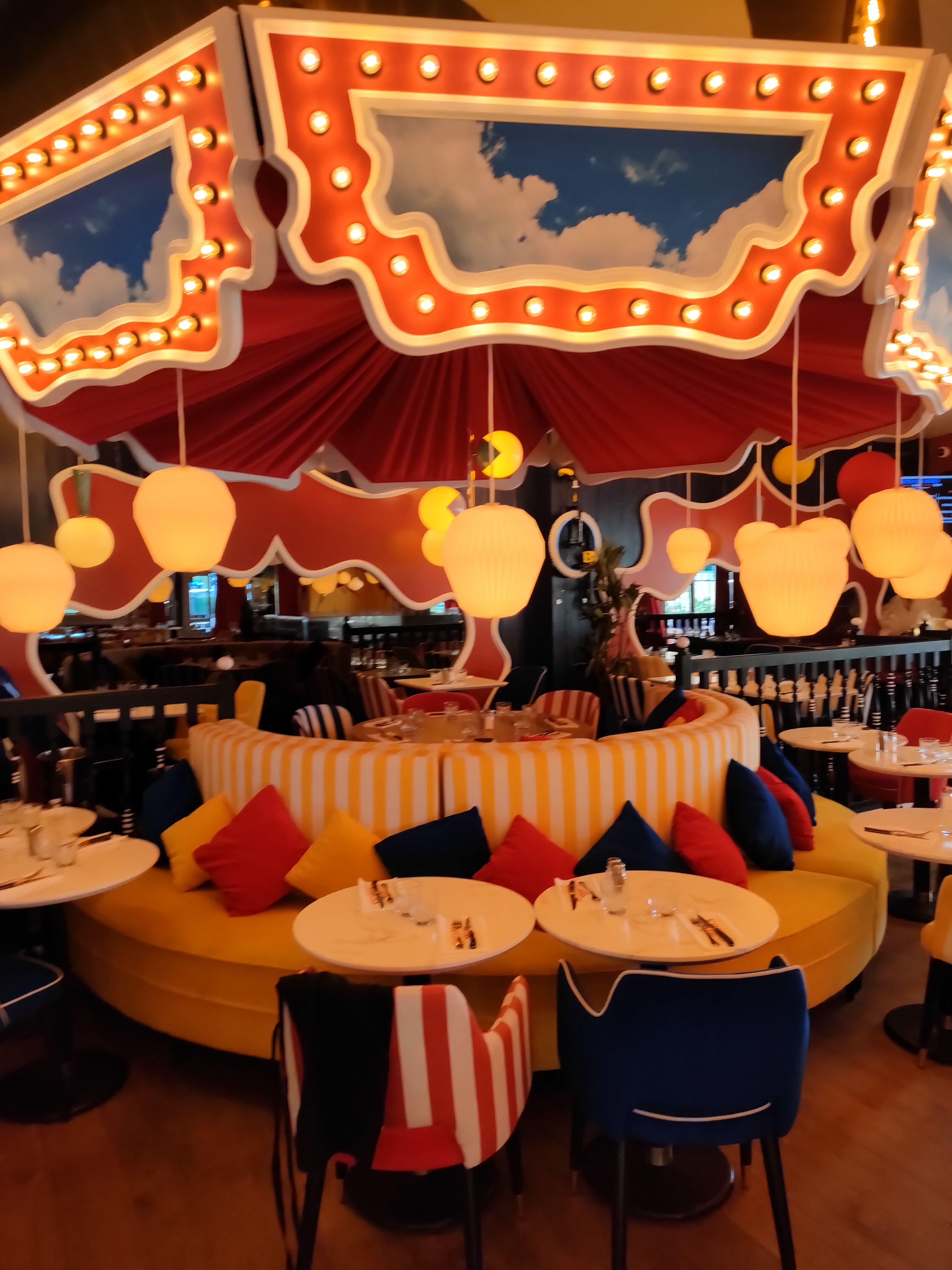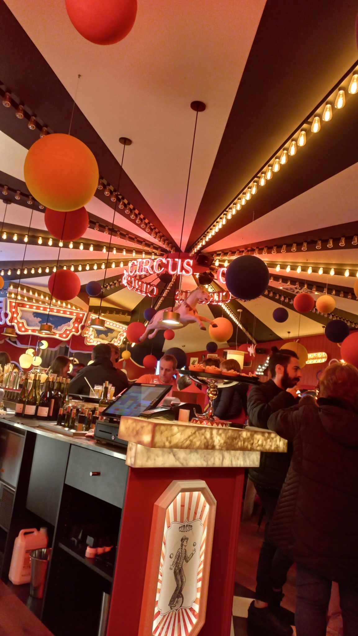 Excellent ! Un restaurant inédit sur le thème du circus . La décoration très sympathique - acrobaties, manège avec des petites lumières.... Un endroit très convivial et familial!