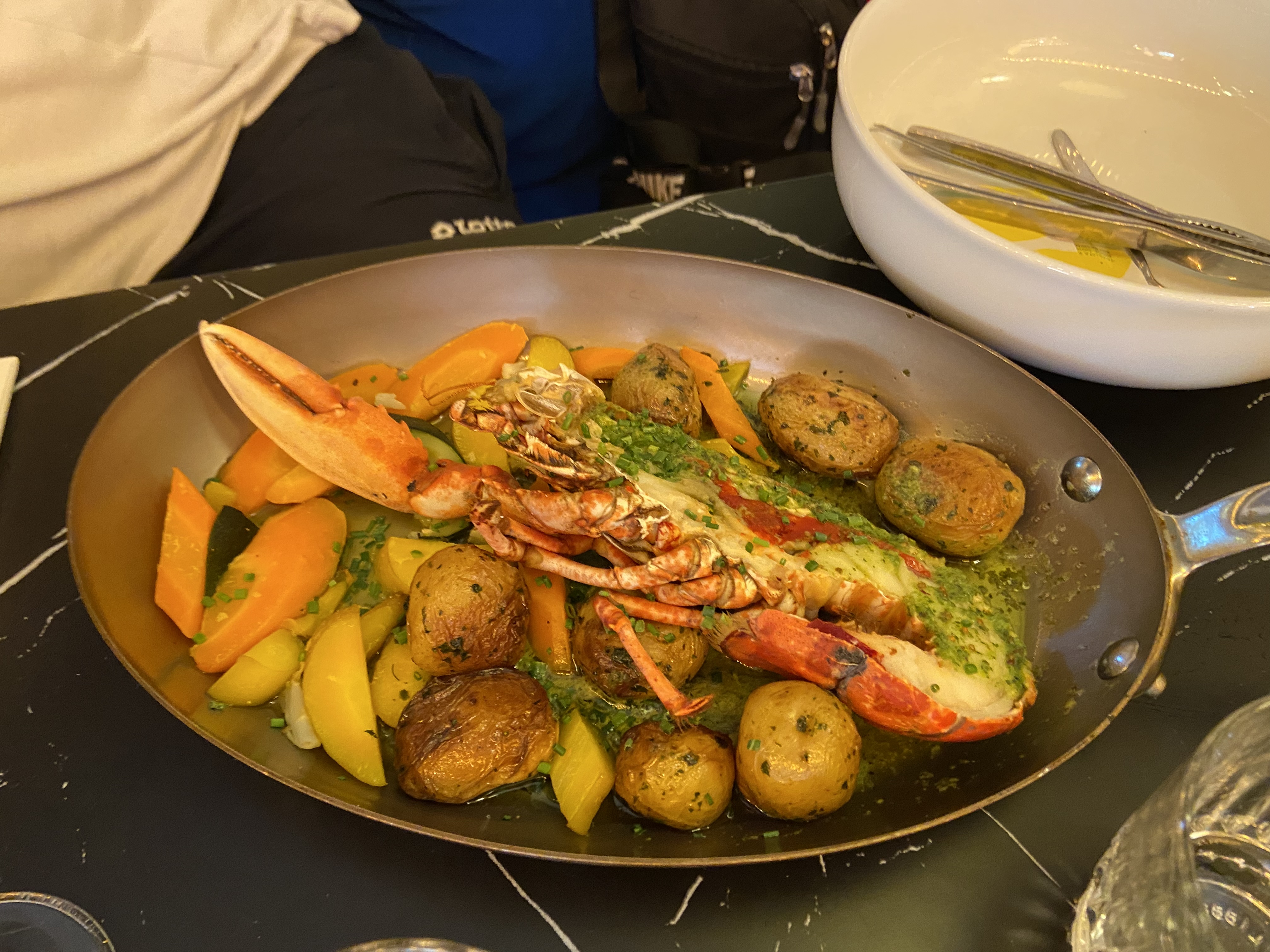 Bonjour. Accueil chaleureux. Très beau restaurant ambiance cirque. Dommage qu'il n'y ait pas de la musique faisant penser au cirque : autant aller jusqu'au bout du concept 😉 Concernant les plats, mon compagnon était déçu de sa côte de bœuf qui était nerveuse, pas de bonne qualité. Et c'est un boucher qui parle. Vu le prix du plat a la carte et du menu, ça mériterait une viande de meilleure qualité. Mon homard et ses légumes ainsi que les desserts, étaient bon 😋