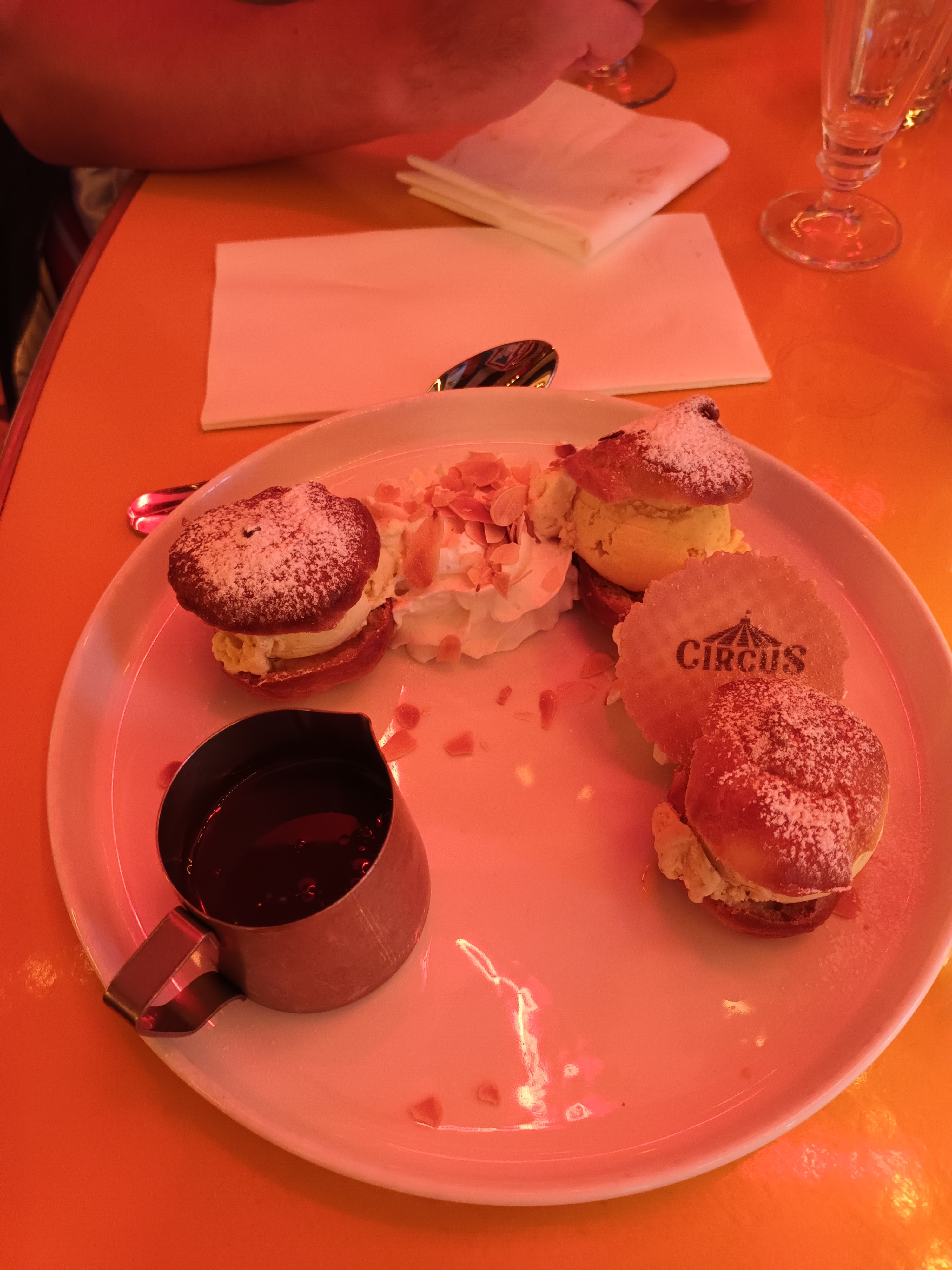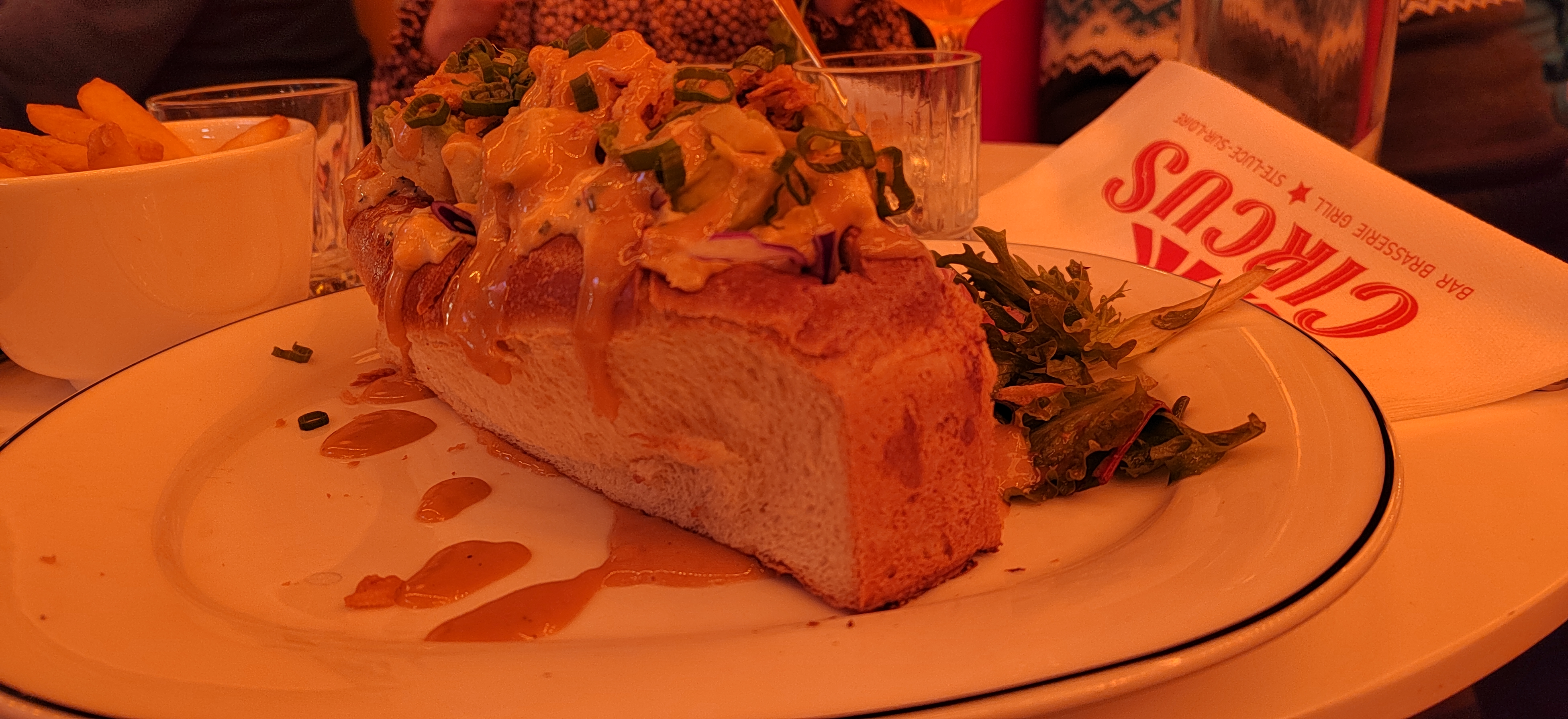 Petit Circus du dimanche soir. Ça vient d'ouvrir et c'était la première fois qu'on y allait. Eh bien c'était vraiment top🍽️🍴. En plus il pris un burger aux homard, et j'aime tellement le homard, c'était donc délicieux. Et des profiteroles. On y reviendra parce que il y a des choses que j'aimerais goûter. C'est donc à Sainte-Luce-sur-Loire si vous passez dans le coin.