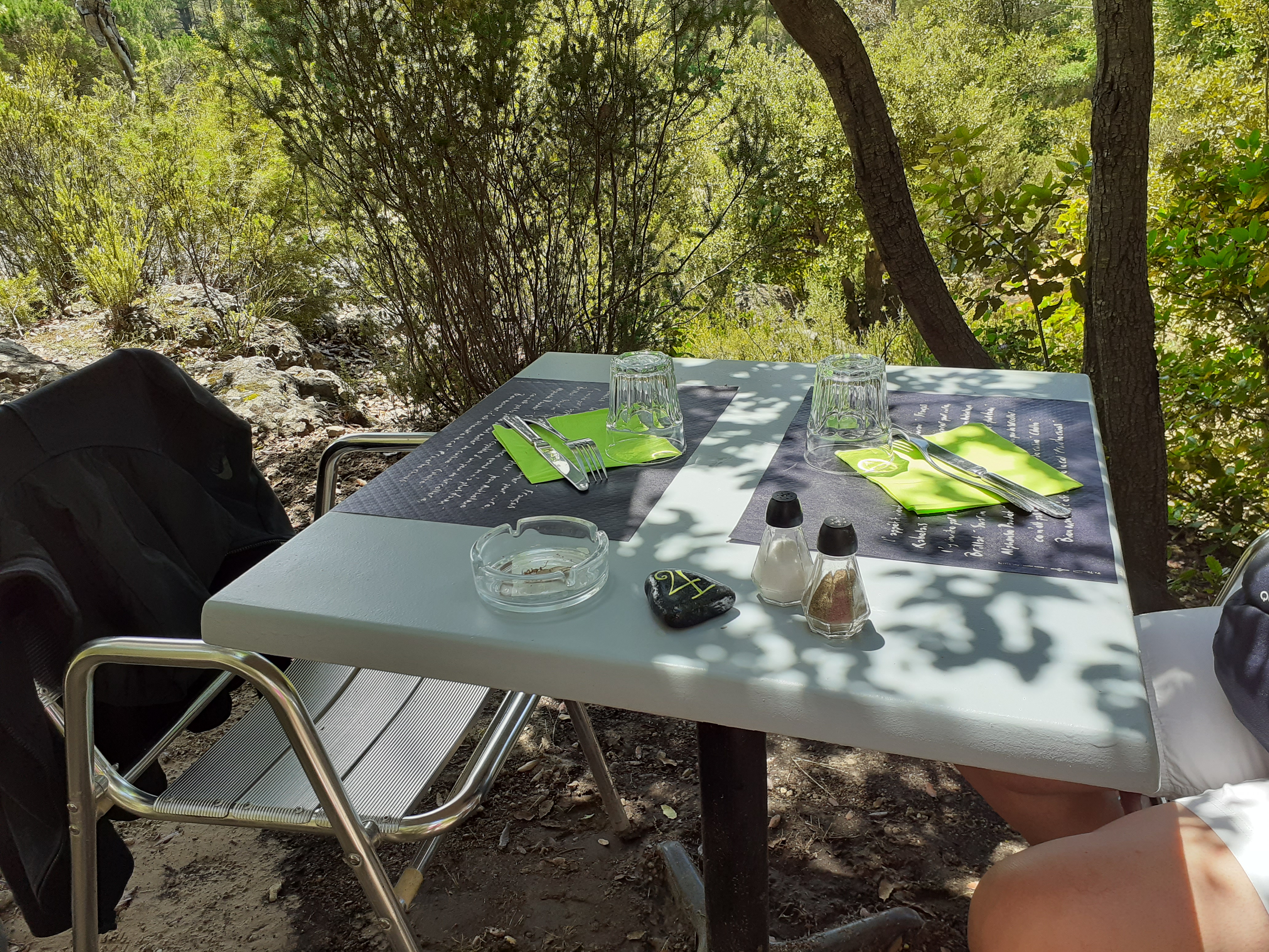 Après une petite rando dans ce magnifique cirque de Mourèze, un déjeuner sous les rochers. On reste dans l'ambiance ! Un excellent rapport qualité-prix. Que demander de plus pour finir cette promenade.