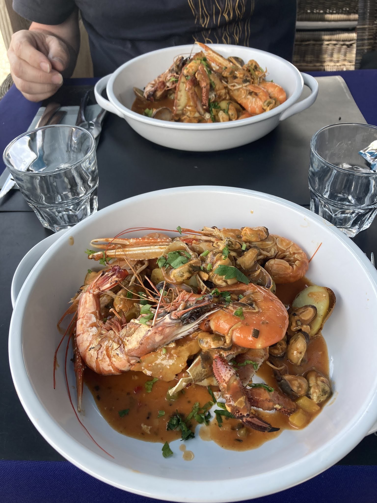 Bien déçus ....repas.du soir pour 2 : pas de.coktail.possible car la gérante est absente?!?!?! que des parilladas possible le soir Ok. Qui s'avère être que des morceaux de poissons/ crustacés surgelés sans goût, jetés.sur une.plancha.... Juste des petites coupelles de.legumes par.contre très bien assaisonnés avec de.la.coriandre dont le.gout était exceptionnel! Desserts insipides et pas faits maison..... Cerise sur.le gâteau : pressés de.terminer le service,il n'était que 22h en pleine saison Je ne recommande pas Le tout pour 76€!?!?!?!
