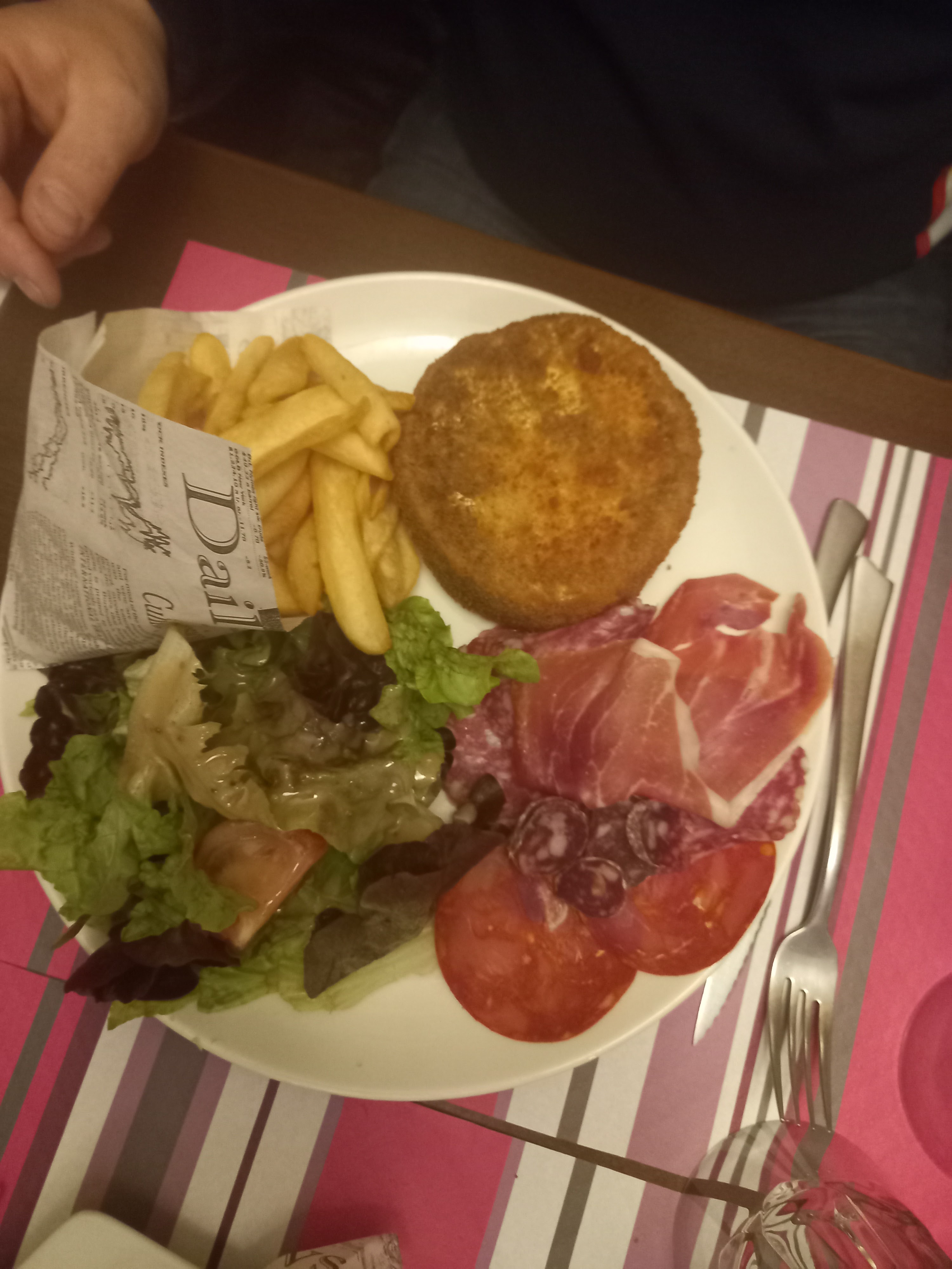 Salade de tomate et mozzarella sans tomates ! Camembert pané servie avec salade une seule feuille sous le camembert très fort en goût ! Enfin le dessert bon sans plus. Les serveurs un peu dépassés pour une table de 15.
