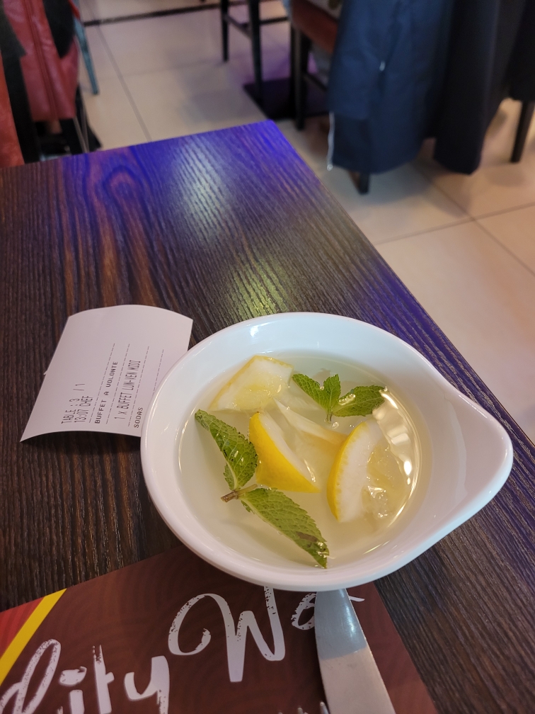 Pour la première fois que je pars avec mon copain.. On nous a accueilli après une petite attente à l’entrée. Lorsque la femme nous fait asseoir, on nous oublie complètement et on ne nous demande pas ce que l’ont veut à boire. Les entrées froides n’ont quasiment aucun goût mais ce n’est rien on ne peut pas vraiment attendre grand chose en ce qui concernes les entrées. CEPENDANT !! Nous nous étions dit que les plats pourraient nous faire changer d’avis sur l’endroit 🙏🏾 Les repas chauds sont vraiment très bon avec beaucoup de saveurs..le bémol est que c’était TROP gras ! Il y avait trop d’huile dans l’assiette..Dommage..