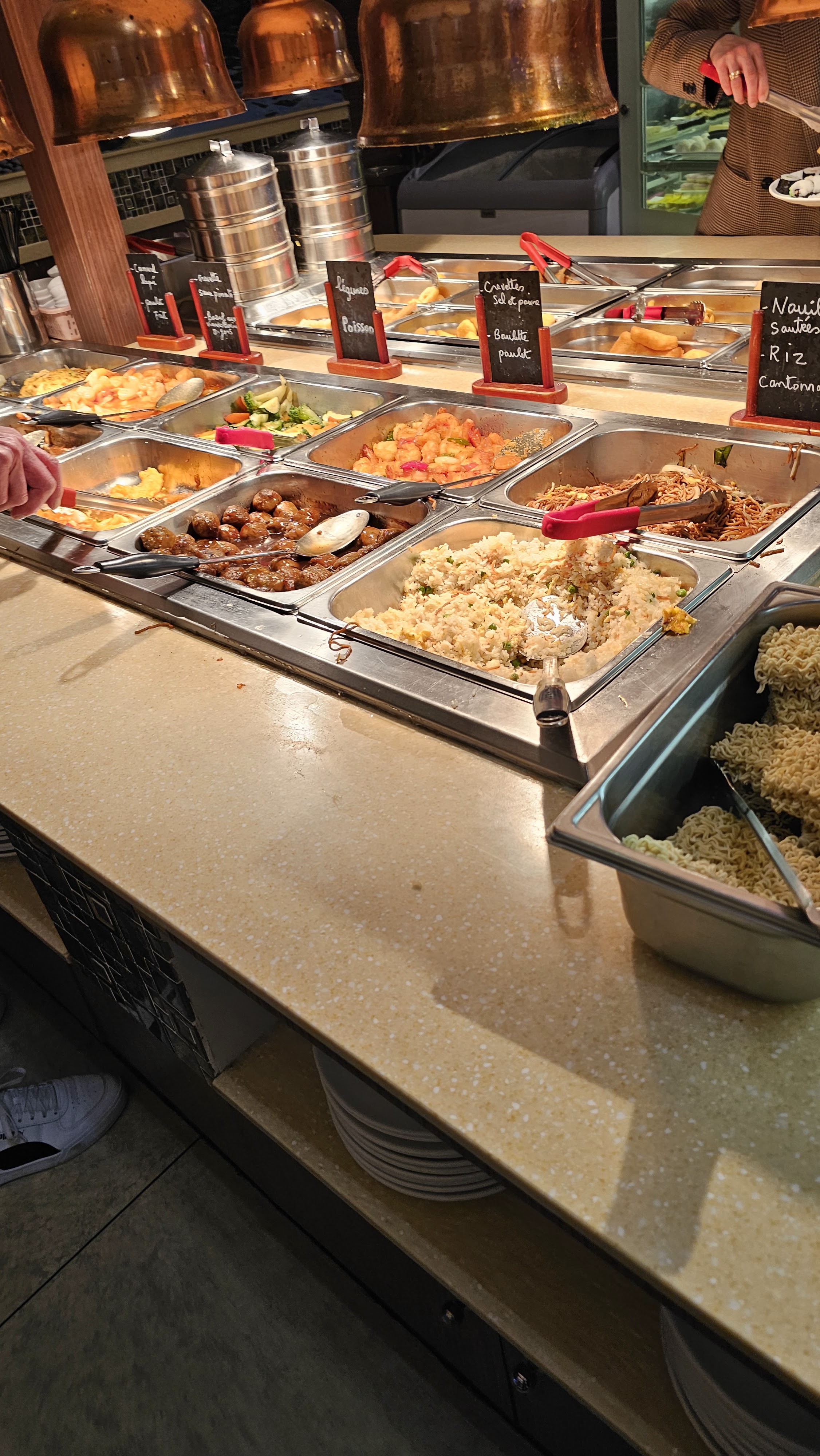 Il y avait du monde ce midi !mais il y a une bonne organisation et les plats sont très régulièrement approvisionnés . le buffet est bien achalandé avec de nombreux produits et les woks bien préparés le budget est très intéressant en semaine le midi Je recommande