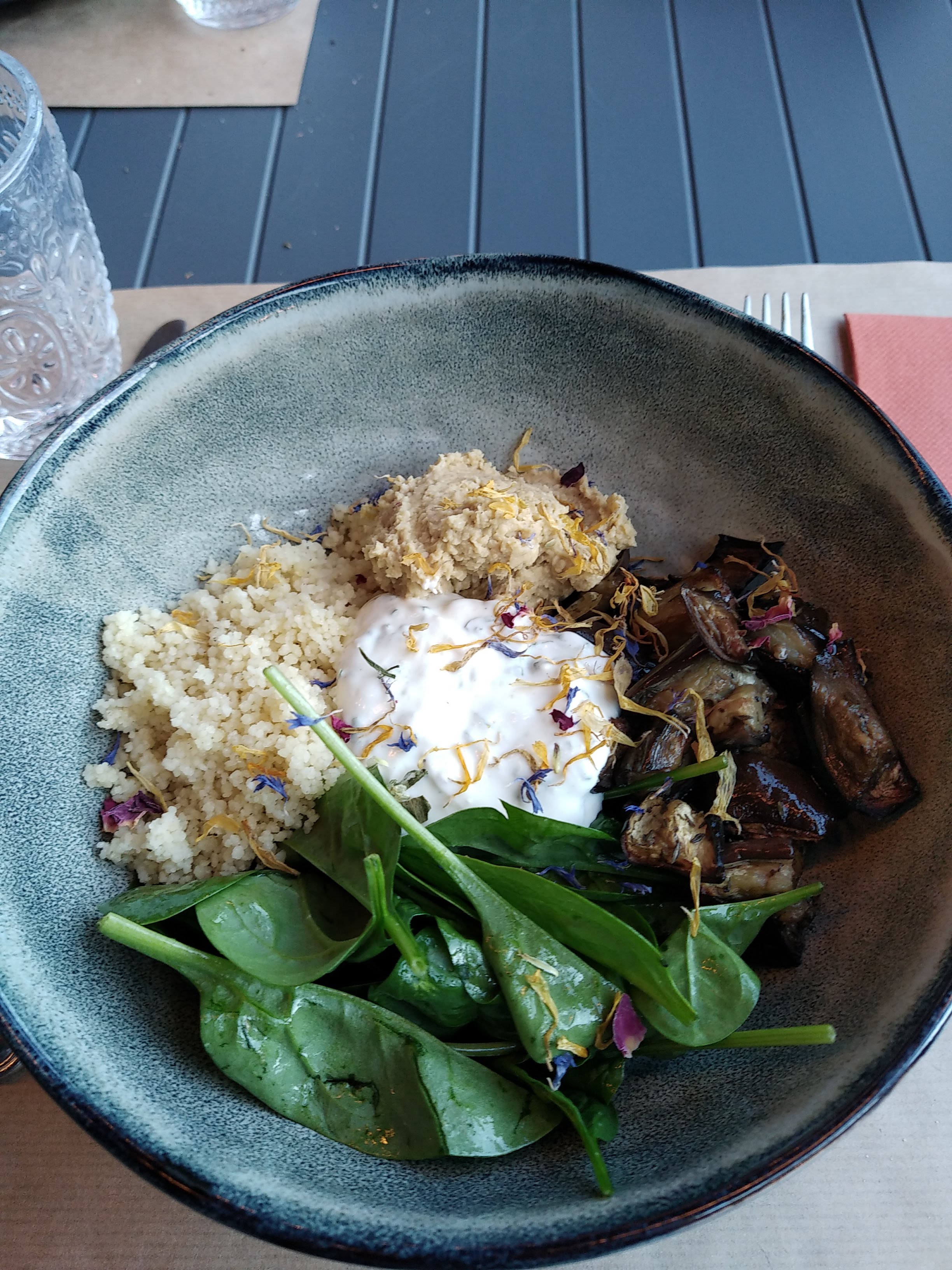 Juste exquis, cuisine très fine avec une excellente présentation. : plat de saison (tajine légumes d'hiver + quinoa) et vraiment gros coup de coeur pour l'entremet au litchi. Personnel bienveillant. Décoration soignée et chaleureuse.