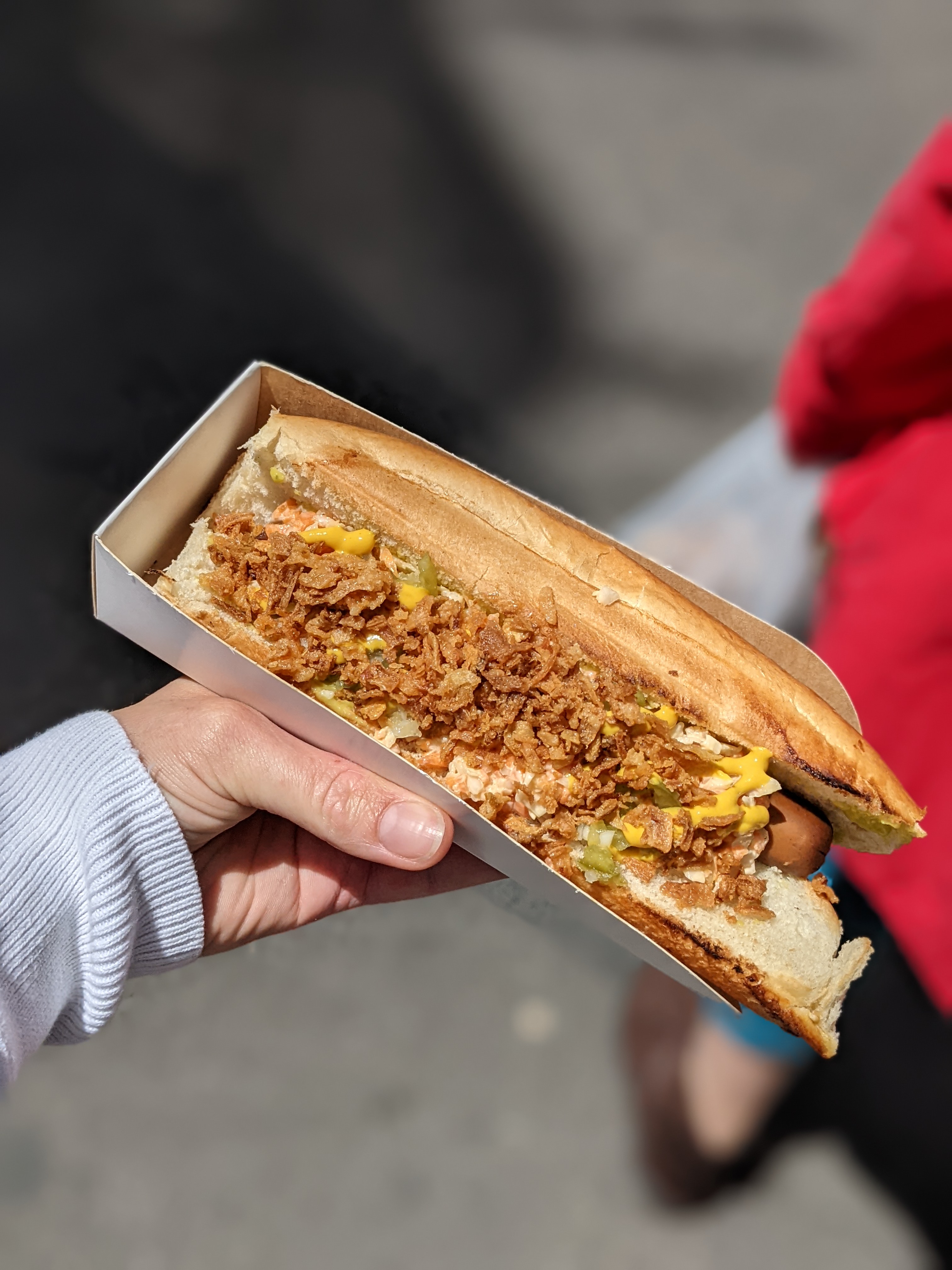 Un hot-dog classique mais très bon qui remplit comme il faut et avec goût, le patron est super cool, rapide, efficace je recommande 👌