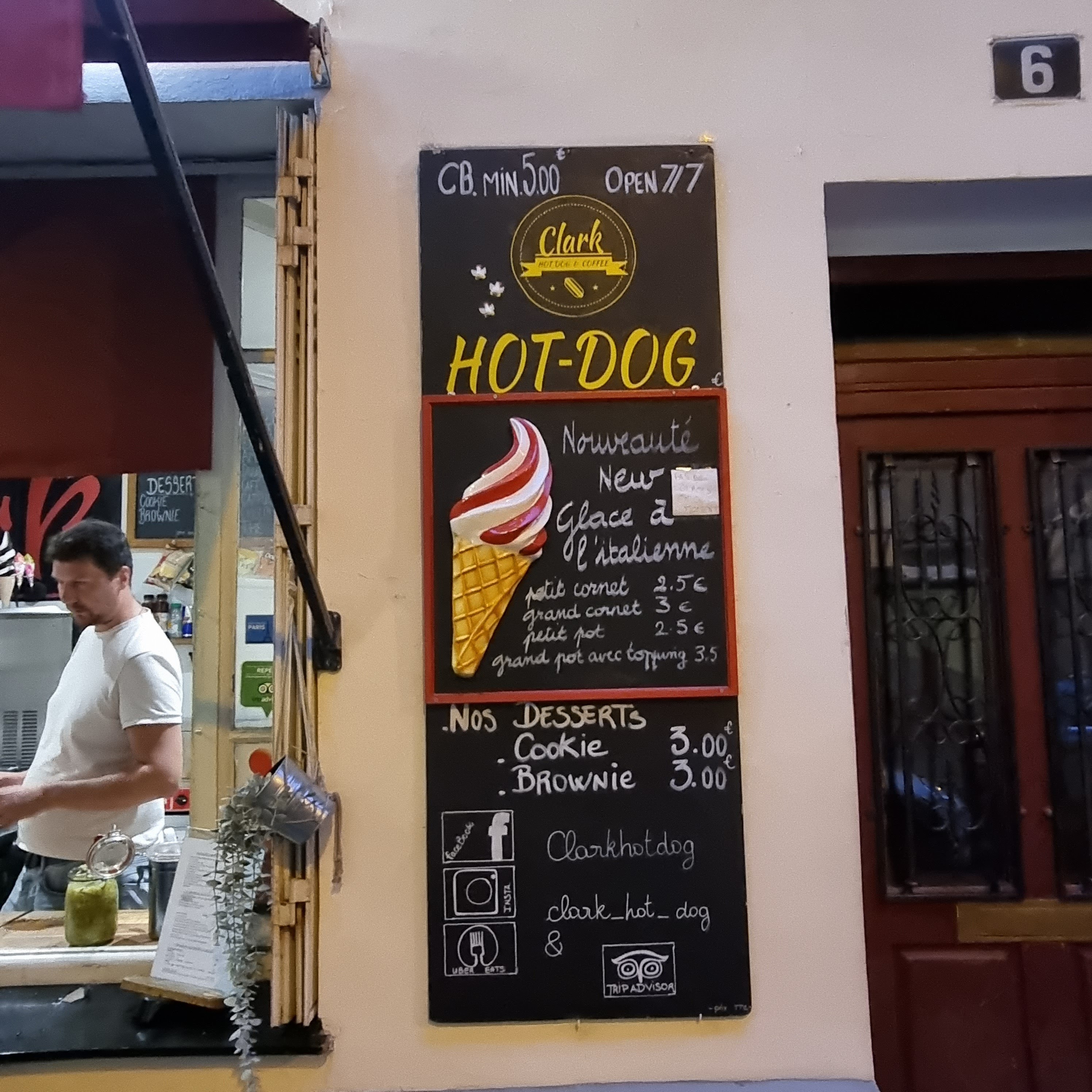 J ai passé plus de 10 ans à New-York. J ai une expérience hot dog assez conséquente. J ai halluciné en mangeant chez Clark! C était comme à NY mais en mieux! Copieux et au juste prix, je suis fan du Coney Island (guacamole et coleslaw) Tout est fait maison ou presque…cerise sur le gâteau, la gentillesse du patron et des ses employés. Ça change des attitudes parisiennes 🙄 Vous le prenez à emporter (pas de table) et vous allez vous installés au bord de la seine, face à notre dame🤩 Dites que vous venez de la part d anthony 😜