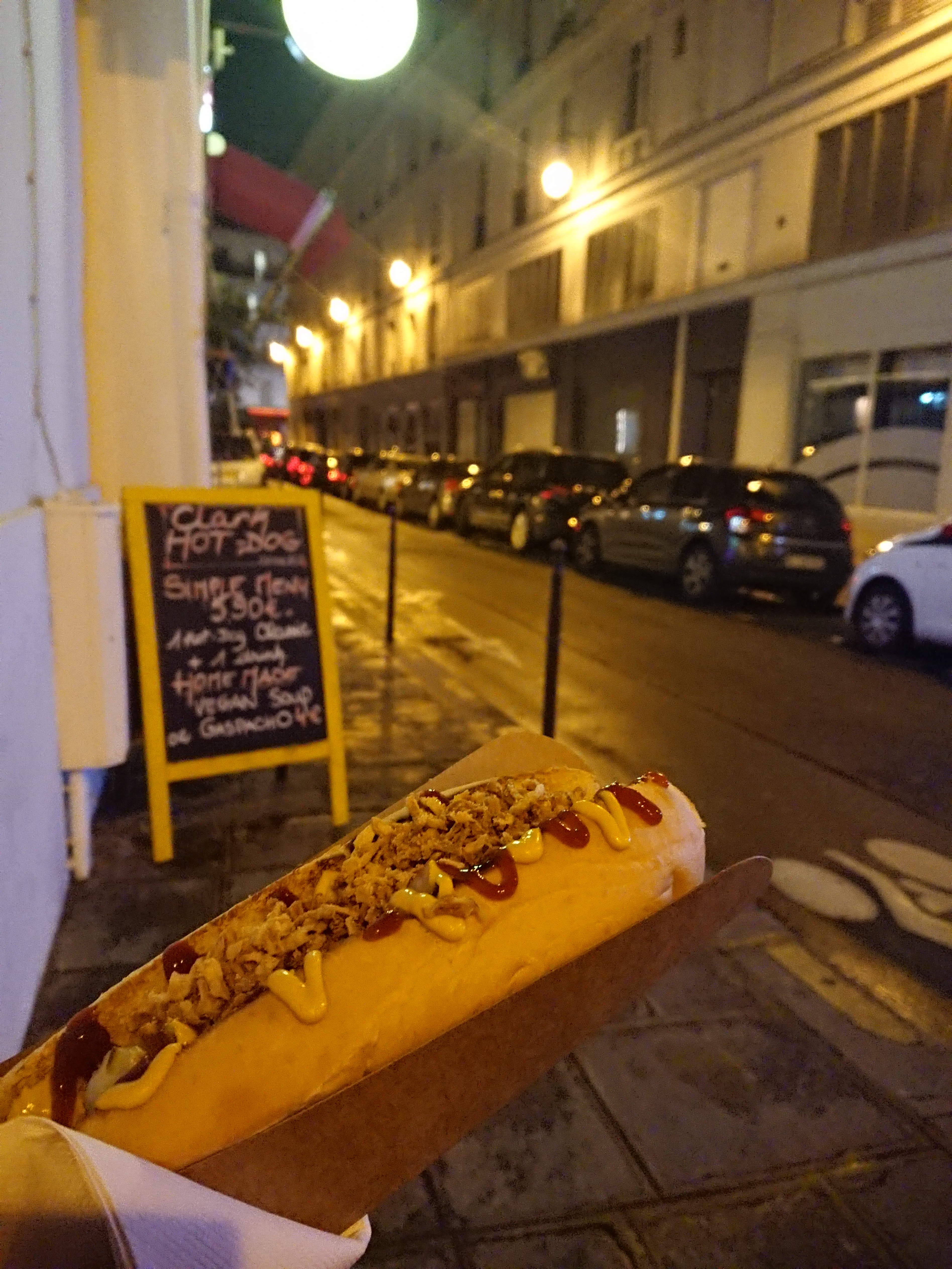 Les meilleurs hot-dogs de Paris. Le gars qui travaille là-bas a la meilleure énergie de la ville.