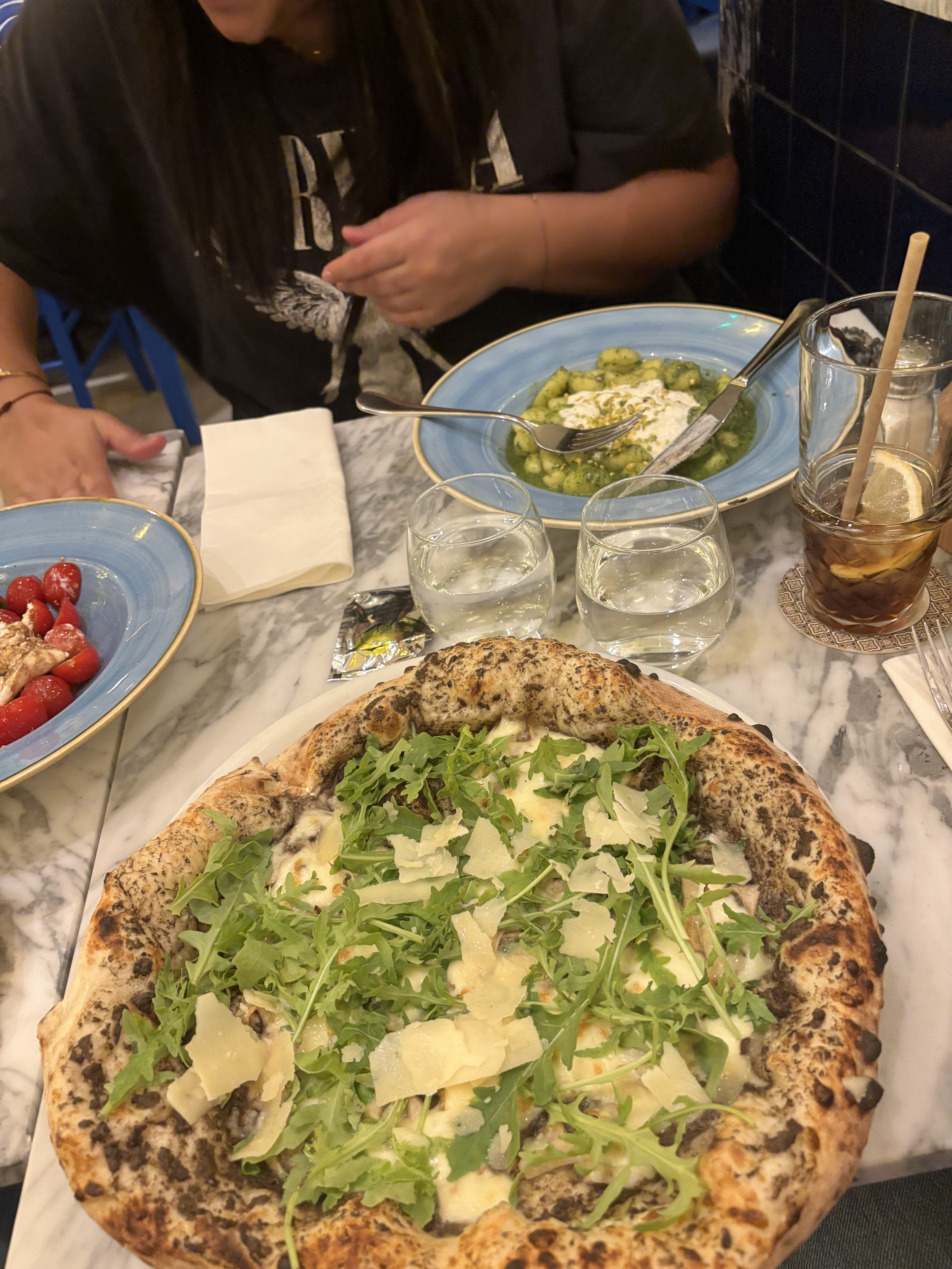 Pizza type napolitaine, très bonne. Pâtes très bonne. Le décor est super beau et la terrasse très sympa. Dommage que ce soit si chère…