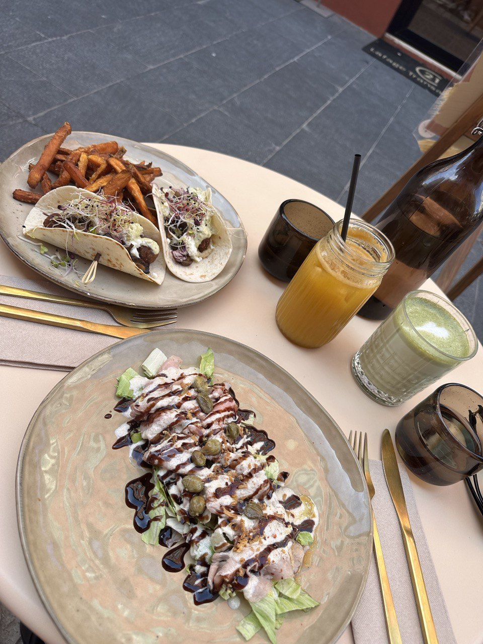 Le lieu est superbe, la vaisselle est jolie, les plats sont bons et copieux (les frites de patates douces sont incroyables 😻). Dommage qu’il y ait eu un petit couac avec le personnel débordé pendant ces ponts de Mai