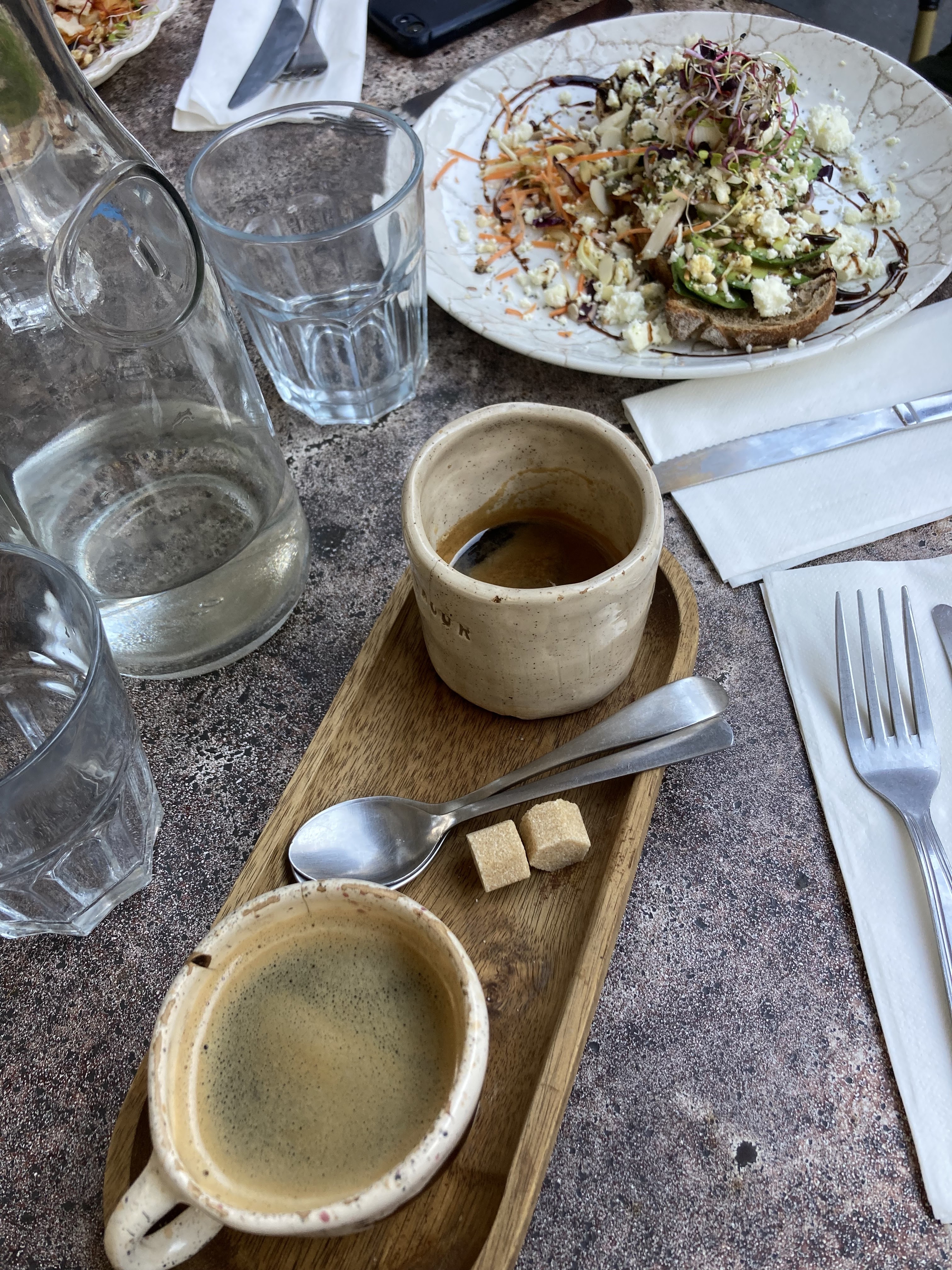Points positifs : - Lieu sympathique - belle vaisselle de créatrice locale (Dobrunia) - les plats sont bons et bien présentés Points négatifs : - Énormément d’attente à l’installation et au service. Le serveur nous annonce 15minutes d’attente. Nous restons 40 minutes dans la file d’attente pour une table à 4 personnes un dimanche (malgré leur extension de terrasse sur le restaurant voisin). Une fois installés, nous attentons à nouveau 30 minutes avant qu’un serveur prenne commande. Et 15 minutes supplémentaires avant d’être servis. Pour boire un café ça fait long… - Serveurs très sympathiques mais manque de rigueur, plusieurs oublis. - Les couverts que nous avons eus étaient sales car déjà utilisés. Heureusement que nous nous en sommes aperçus. - Certains plats (sweet potatoes) n’étaient plus disponibles car terminés à partir de 14h30 Le concept est sympa, les plats sont bons mais il y a d’autres endroits bien plus intéressants à mon sens.