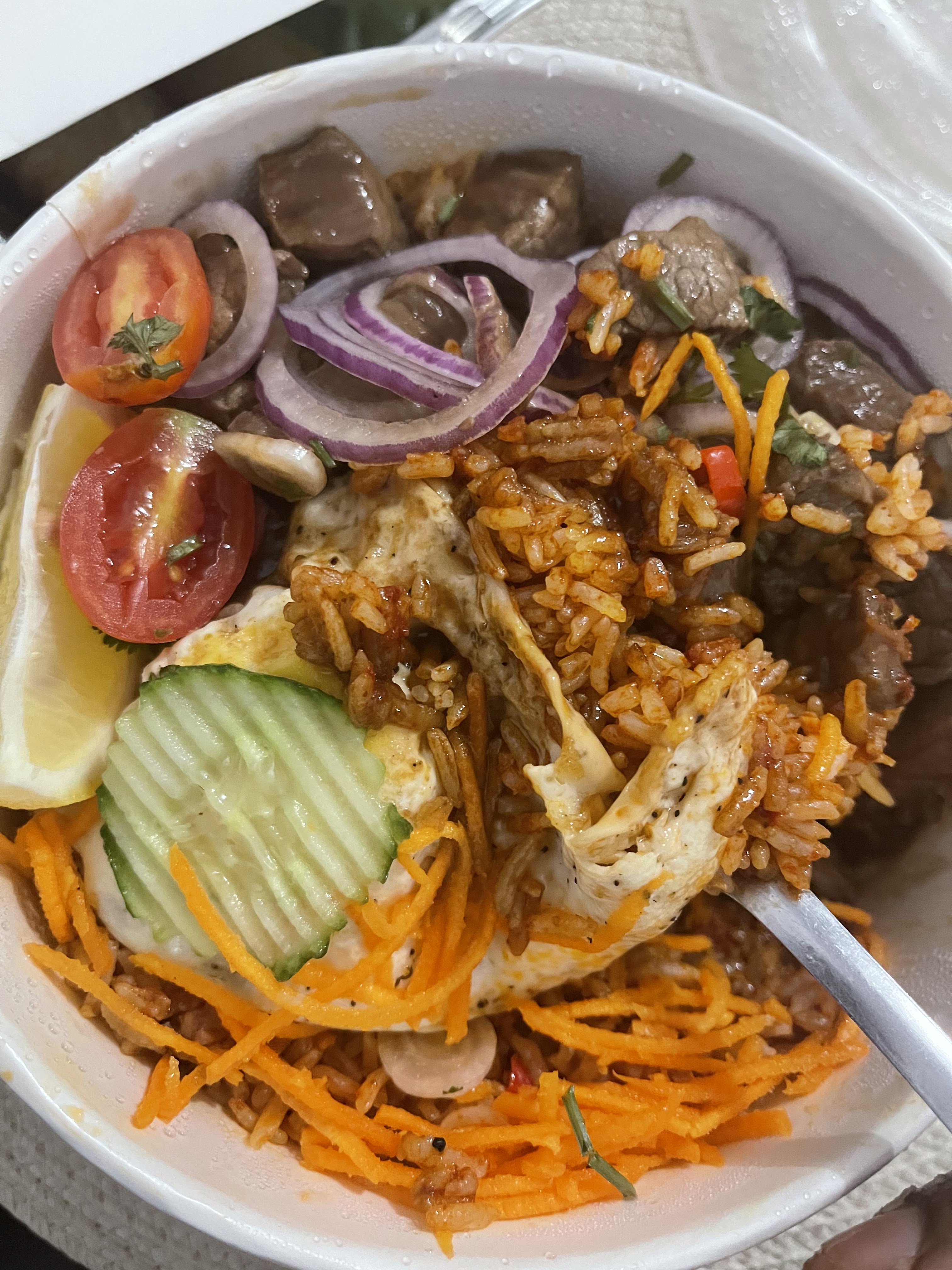 Magnifique plat thaï (loklak), je reviendrai pour goûter le reste de la carte qui a l'air très appétissante !!!
