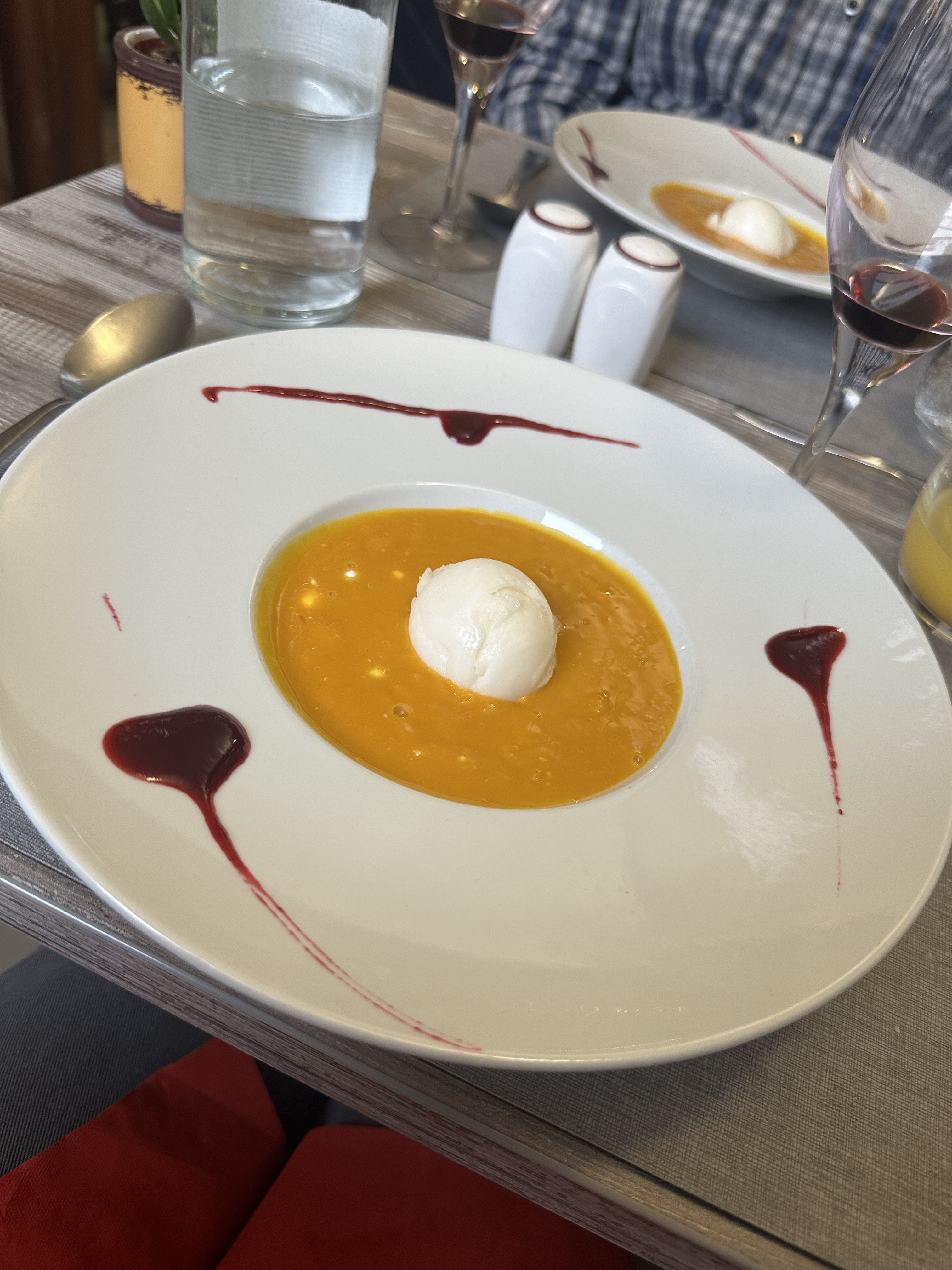 Repas très bien, un petit bémol pour le parfait glacé miel mirabelle, pas trop le goût mirabelle. Pour le reste c'était très bien