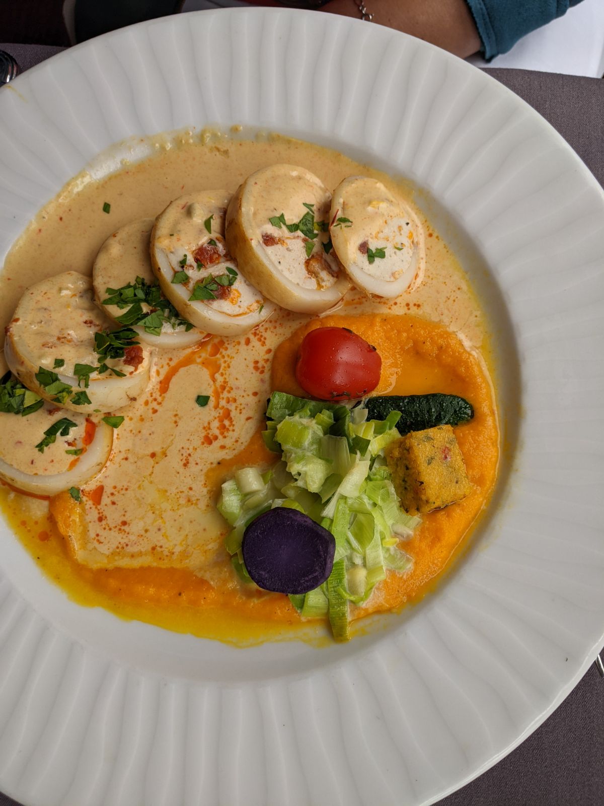 Bonne présentation des assiettes. Déçu sur le plat servi avec fromage escargots il n y avait pas une réelle symbiose et le goût de finesse n y était pas. Le sandre beurre blanc était bon mais le poisson trop cuit. Le dessert fromage blanc parfait. Le service parfait ainsi que l accueil. J y retournerai l'orque il changeront leur carte.
