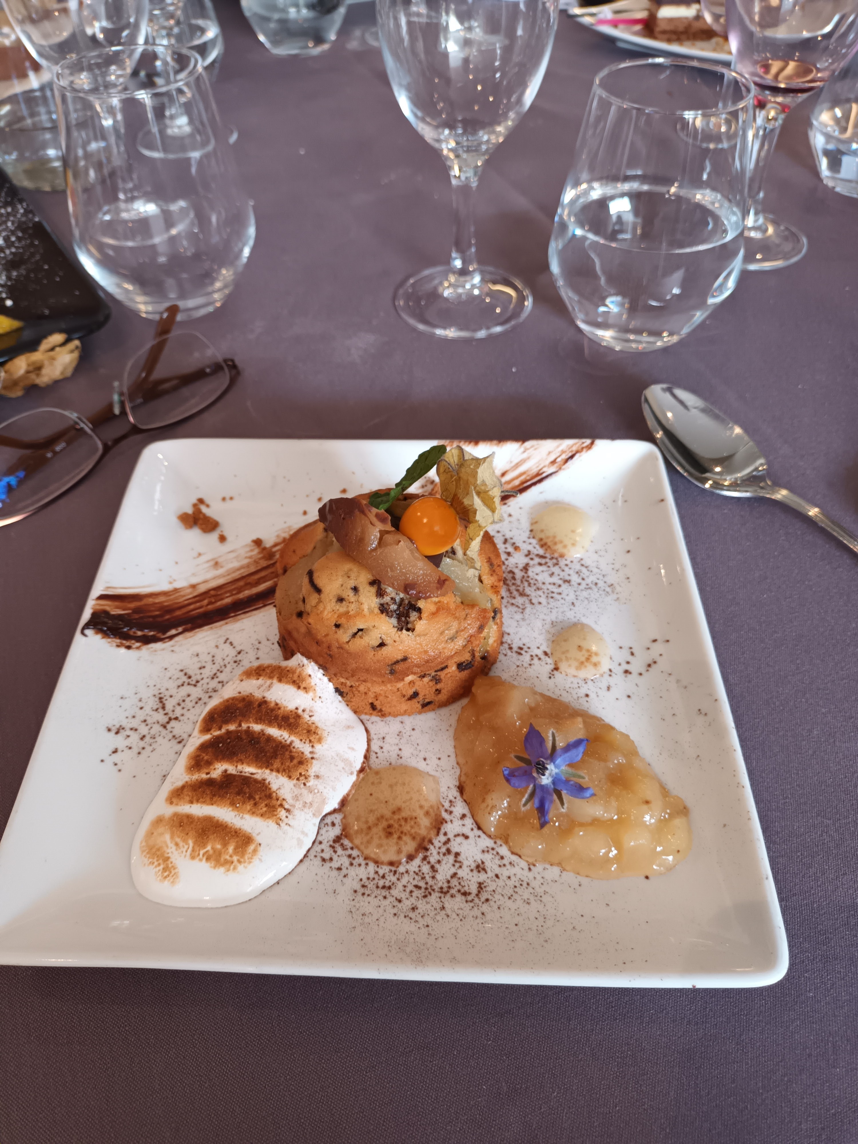 Repas de fin d'année avec mes collègues de travail. Ambiance décontractée. Cuisine fine. Pour moi foie gras, faisan avec sa farce et gâteau à la poire. Un vin différent pour chaque plat. Un moment agréable. Je recommande sincèrement.