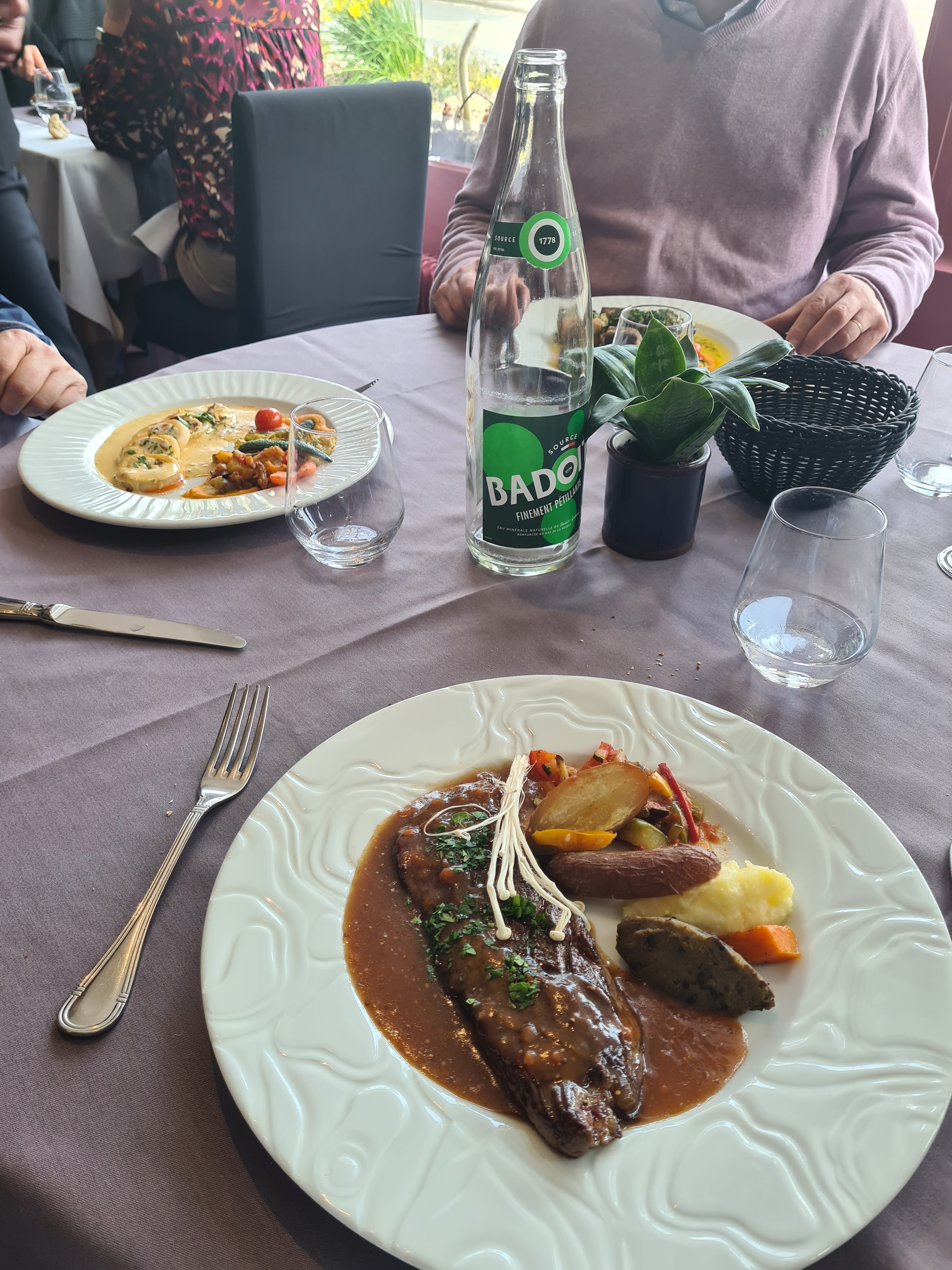 Belle salle avec un accueil charmant, dommage que la cuisine ne suit pas...entrée de filet mignon dans un jus vinaigré sans intérêt, filet de sandre sec et accompagnement ordinaire sans une note de verdure..mon dessert aux 3 chocolats manquait de frais ! Bref franchement déçu ! Même pas une bougie d anniv pour ma maman alors qu ils étaient prévenus 😭😭