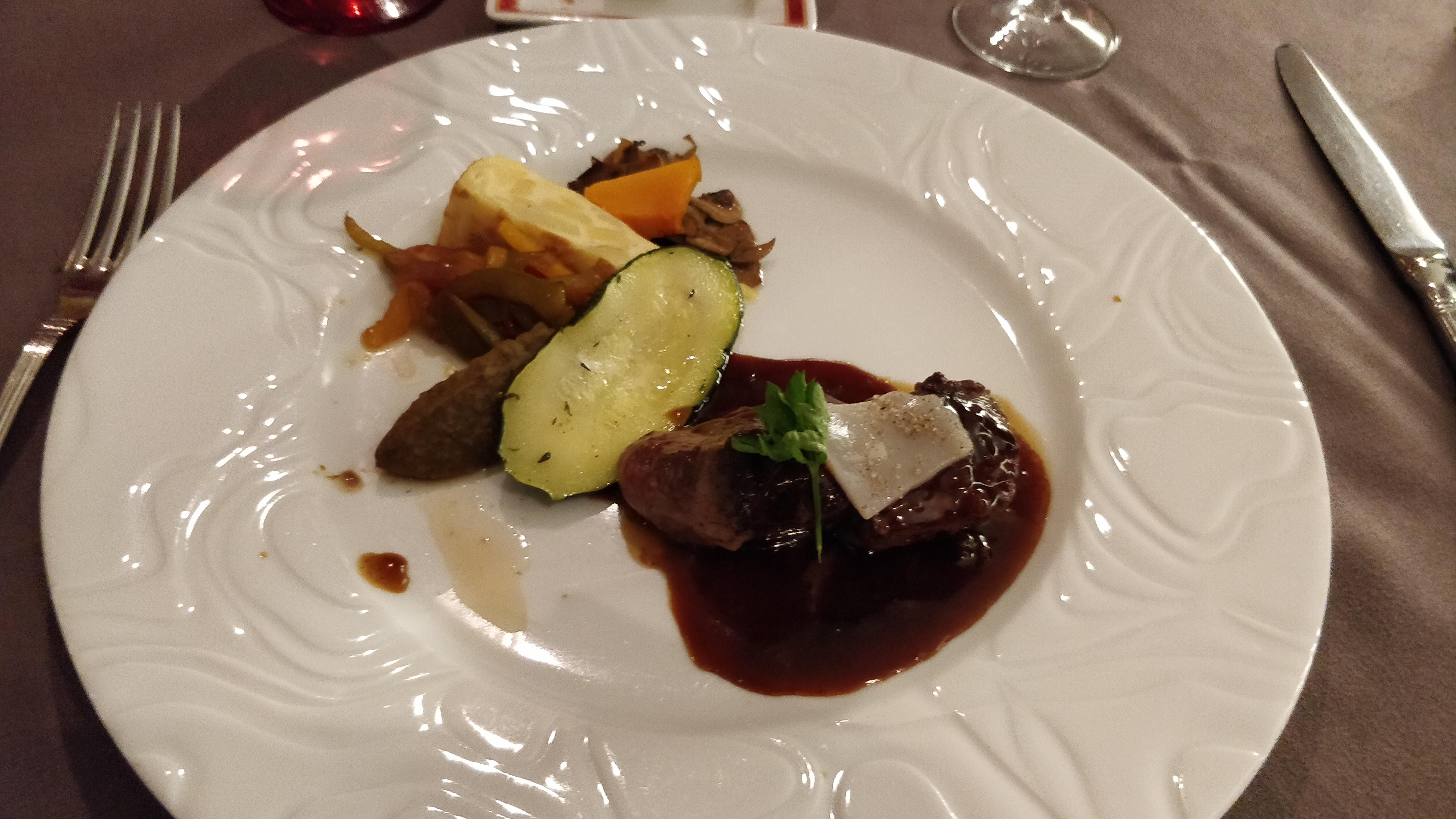 Le marbré de Langue de Bœuf Crécy Foie Gras, Sauce Acidulée n'a rien d'exceptionnel. (je n'y ai pas trouvé le gout du foie gras...) Le steak de Bœuf Poêlé Sauce aux Essences de Foie gras était très nerveux. Et le Carpaccio d'Ananas à la Créole, Méli-mélo de Fruits et son Sorbet était véritablement un délice pour les papilles. Du coup j'y retournerai quand même, mais plutôt pout tester le poisson.